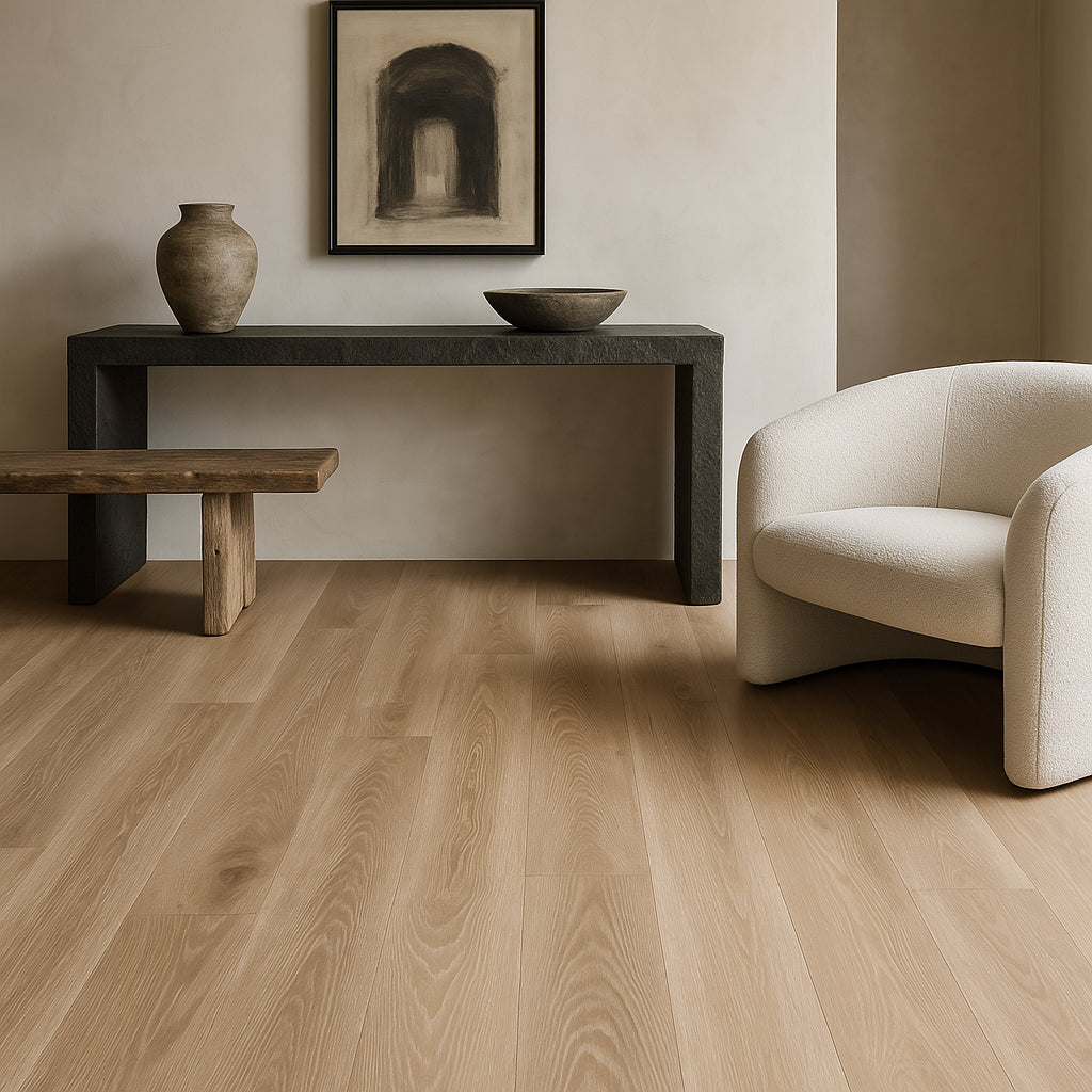 The CALI Aqua Tough Premium Seaboard Oak Vinyl Plank transforms any room with its authentic wood grain patterns and rich, medium-toned hues. Its waterproof and scratch-resistant design ensures lasting beauty, even in high-traffic areas. Pair it with modern or rustic decor to create a warm and inviting atmosphere. This flooring is not just a surface—it's a statement of refined taste and practical luxury.