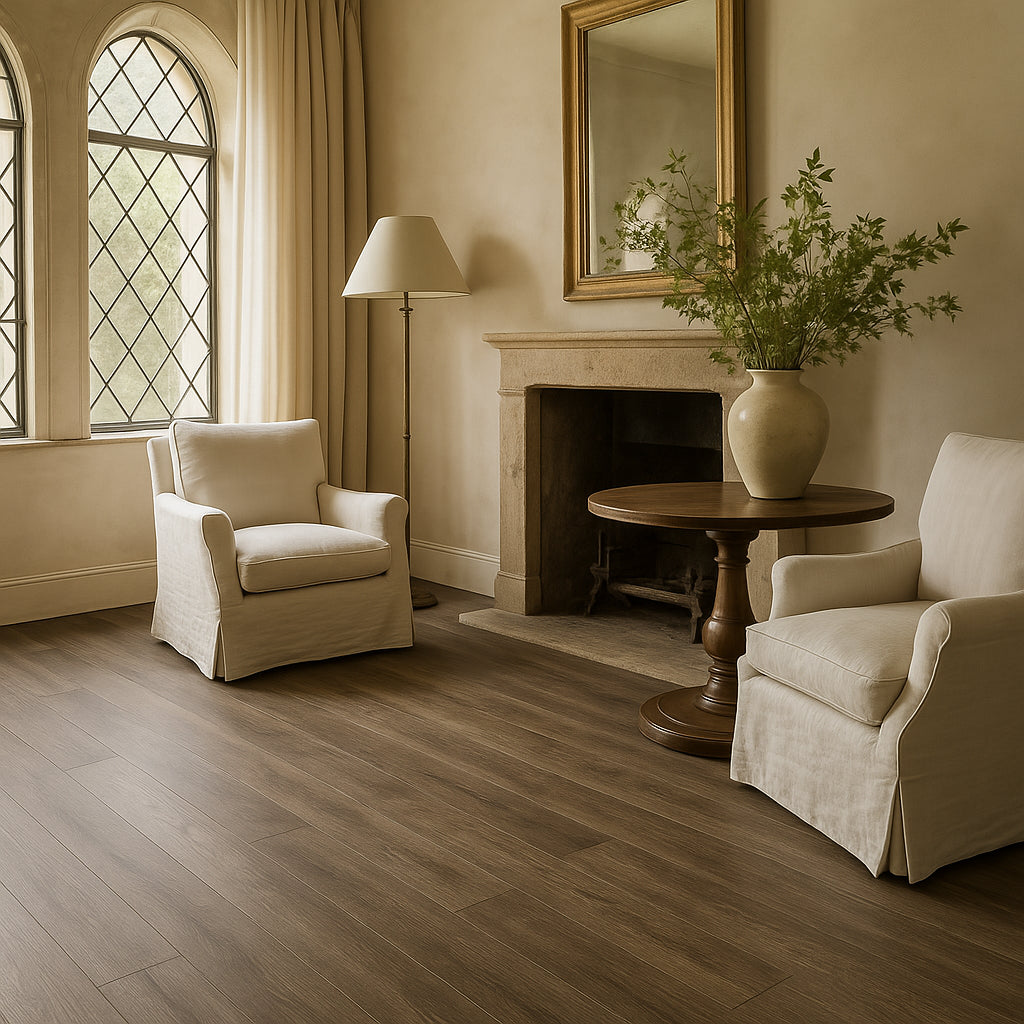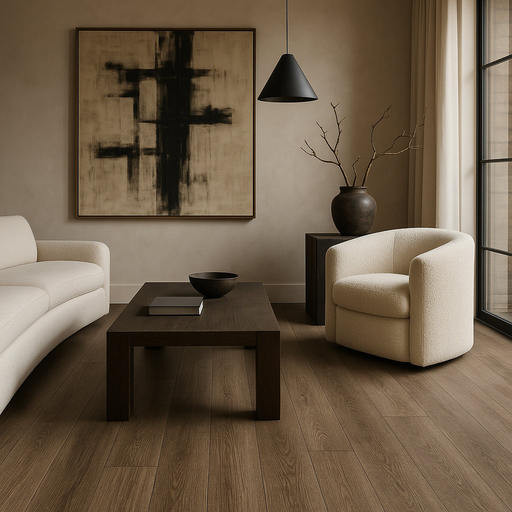 The CALI Aqua Tough Premium Thornwood Vinyl Plank transforms any room into a haven of sophistication. Its rich, dark wood grain patterns evoke a sense of natural beauty, while the durable, waterproof design ensures lasting performance. Pair it with neutral furnishings to highlight its stunning texture, or use it as a foundation for bold, modern accents. This flooring is not just a choice—it's a statement of refined living.