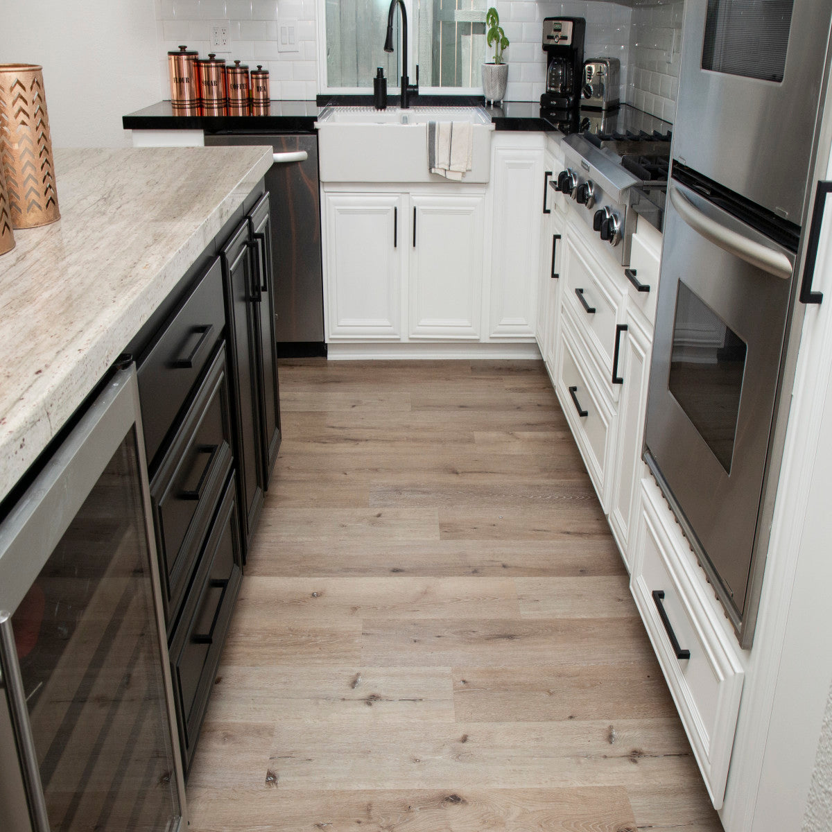 Aged Hickory lays down a softly sun‑washed canvas that instantly warms a room while keeping the palette serene and airy. The painted bevels and gentle grain embossing emulate heirloom wood with a whisper‑quiet underfoot feel. Pair it with matte black hardware and creamy textiles to let the natural knots and tonal shifts shine. It’s an effortless foundation for luxurious, livable style.