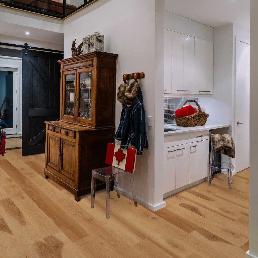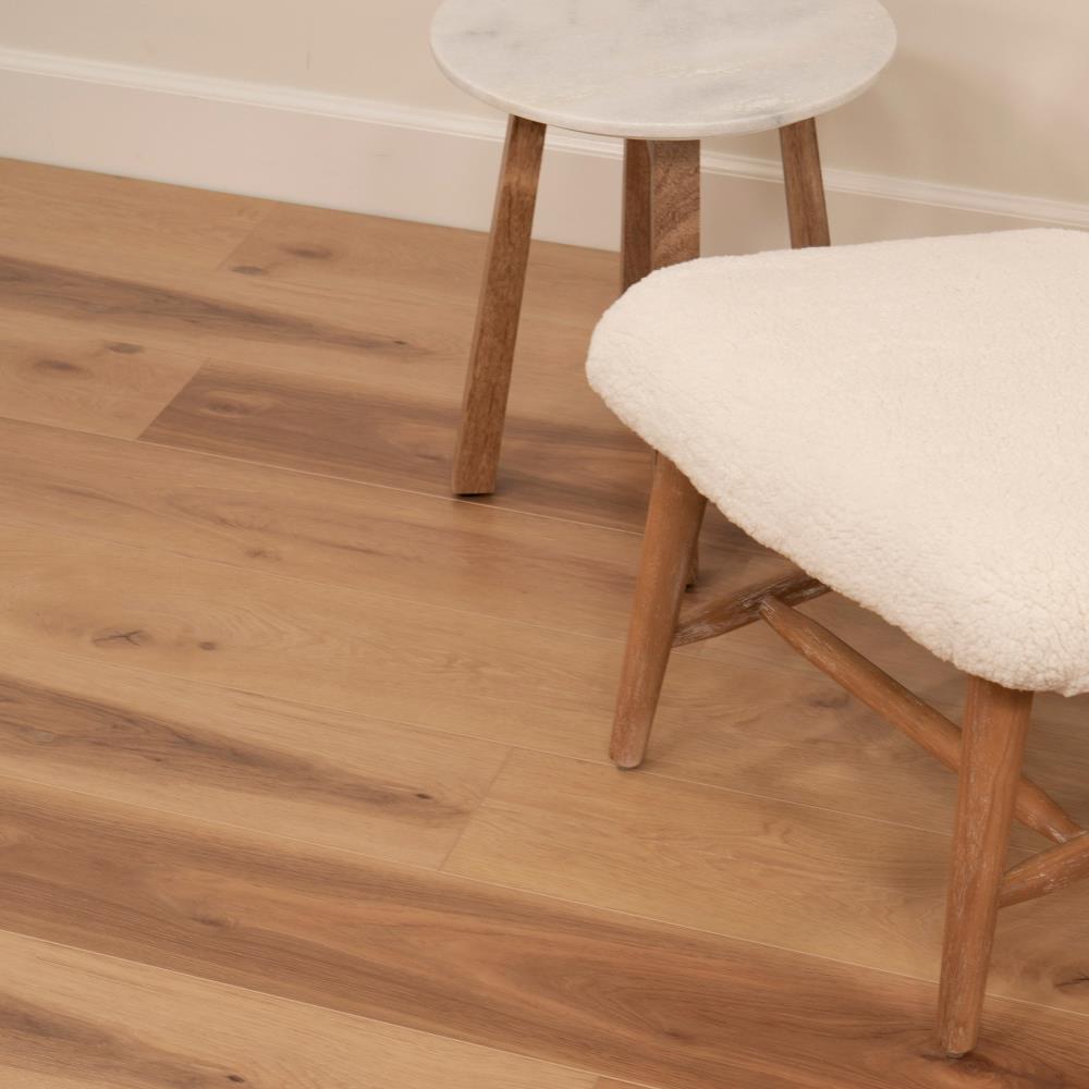 South Seas Oak pours soft, golden light across a room, its flowing grain and authentic knots lending an effortless, beach-house elegance. The wide 7-inch boards feel expansive, grounding modern spaces with natural warmth. Style it with crisp whites and sculptural accents to let the subtle variation sing. This is luxe living made livable—beauty you see, comfort you hear in the hush of each step.