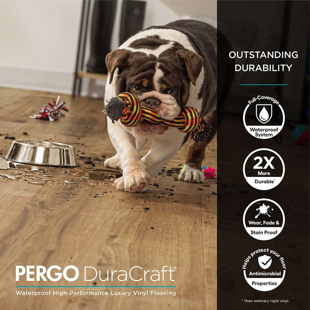 Enhance your space with the Pergo DuraCraft Lavinia Oak waterproof luxury vinyl plank flooring. Designed to withstand high-moisture environments, this flooring offers the timeless beauty of oak with unmatched durability, made for both residential and light commercial use.