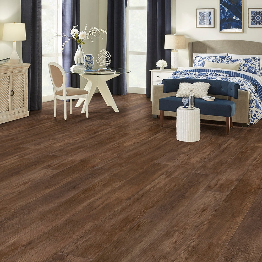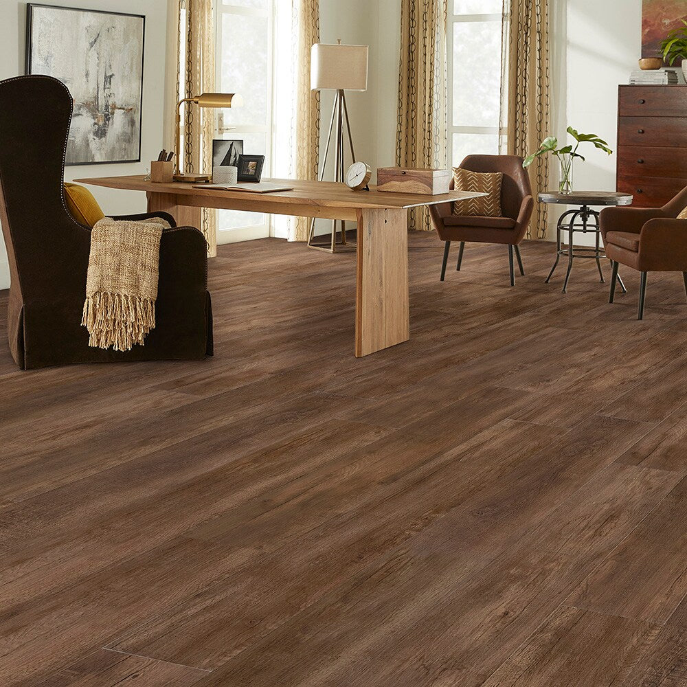 Imagine a floor that is as resilient as it is beautiful. The Pergo DuraCraft Marsala Oak Vinyl Plank elevates any room with its rich oak hues and textured finish that echoes the elegant charm of vintage hardwood. Perfect for crafting luxurious environments, this flooring not only exudes sophistication but is designed for practical durability. Envision combining it with plush area rugs and contemporary furniture to create a seamless blend of old-world charm and modern comfort. Let every corner of your home speak of luxury and resilience.