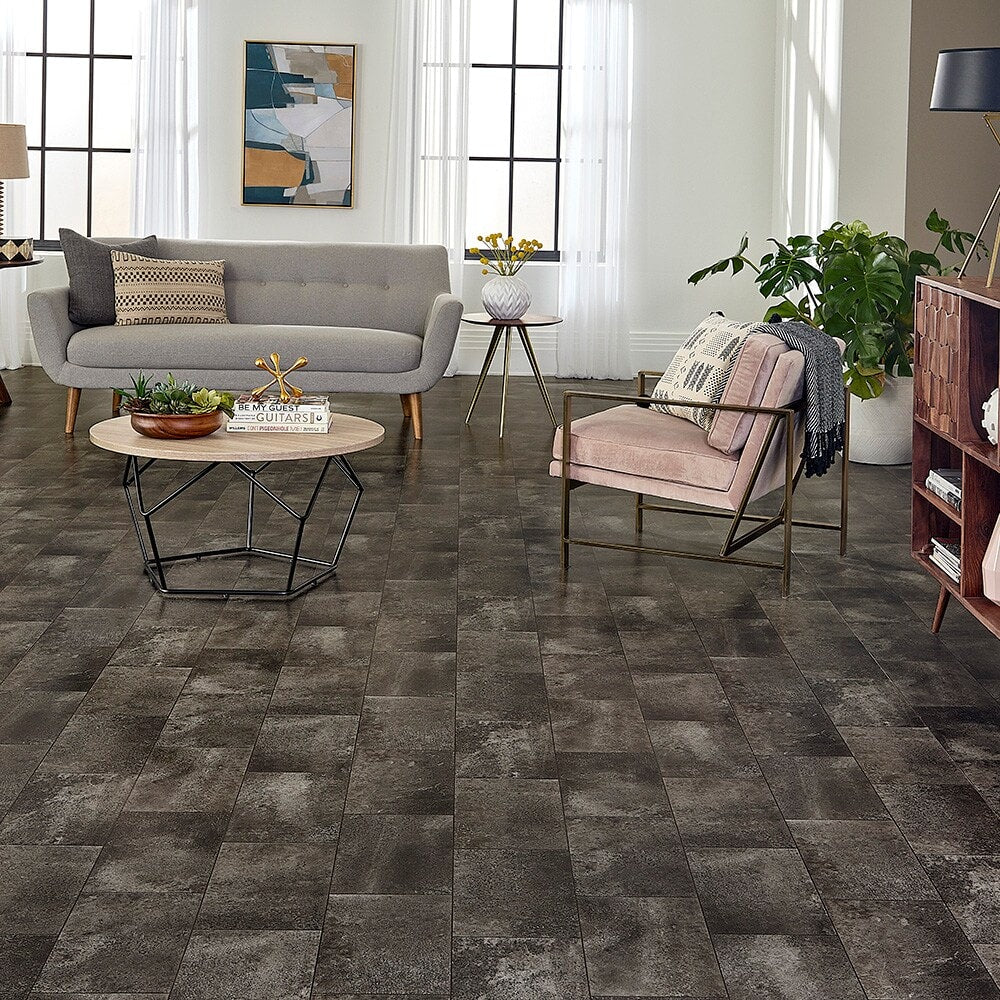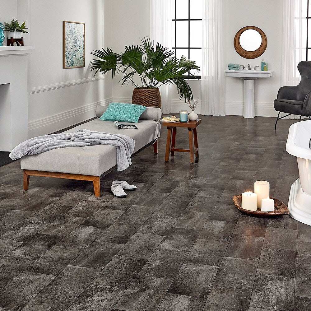 Smokey Sandstone ushers in a sultry, graphite palette that grounds a room with quiet drama. Its low-gloss, textured surface channels the tactility of natural stone, bringing chic depth to modern and transitional spaces alike. Pair it with brushed brass accents and pale oak furnishings to let the rich gray tones sing. Practical yet posh, this waterproof sheet vinyl is an everyday luxury for lively homes.