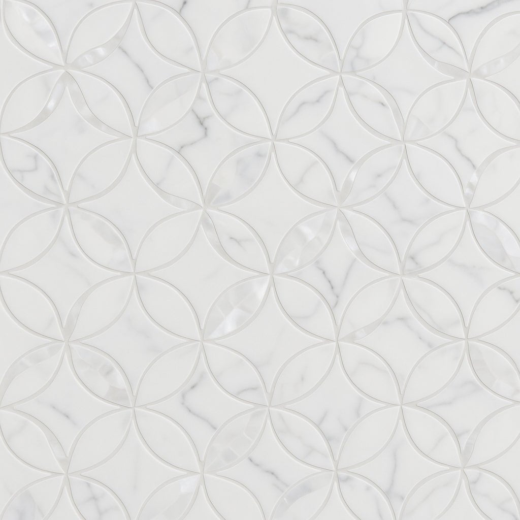 The Lotus Mop Recycled Glass Mosaic transforms any room into a sanctuary of sophistication. Its intricate flower pattern and multi-finish glass material create a luminous effect that captivates the eye. Perfect for accent walls or shower installations, this tile brings a touch of luxury and eco-conscious design to your home. Pair it with minimalist decor to let its beauty shine as the centerpiece of your space.