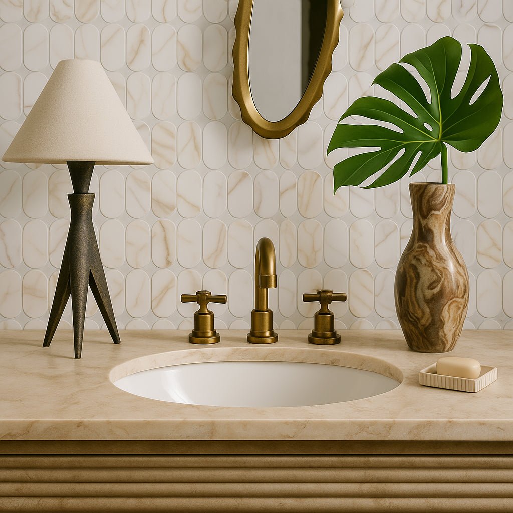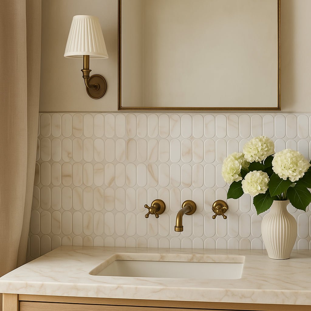 - Elegant Design: Features a marquise oval pattern in a polished white finish.