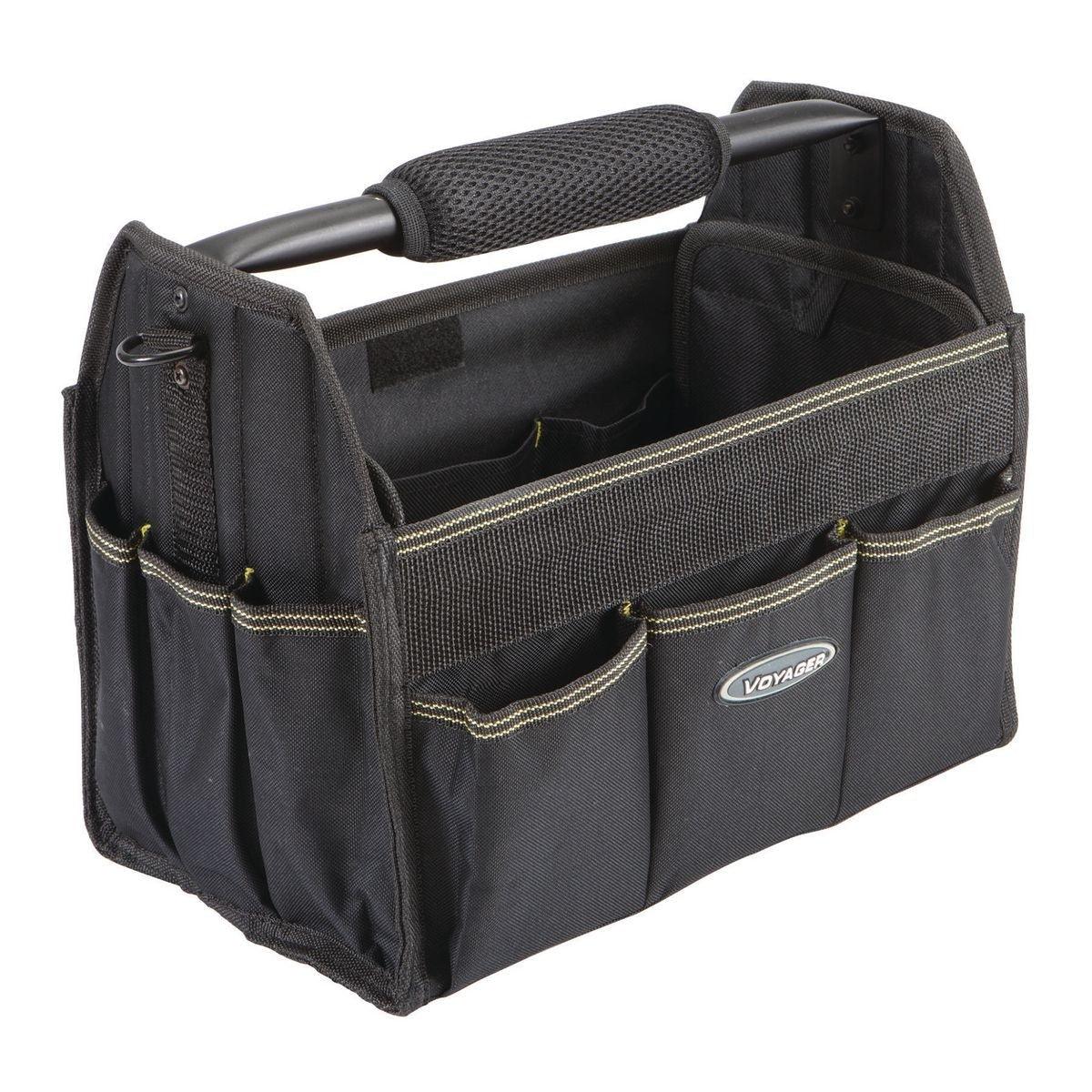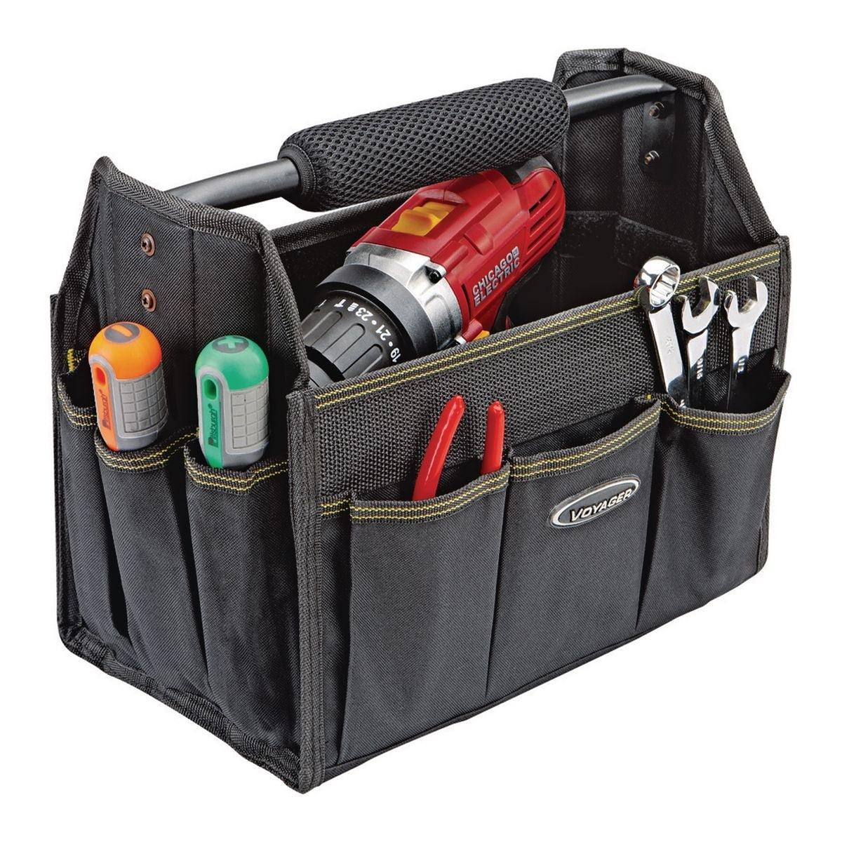 This 12 in. tool bag makes it easy to tote your favorite tools to the jobsite. This tool tote has pockets inside and out to keep tools organized. Made from heavyweight polyester fabric, this 12 in. tool tote stands up to hard use.