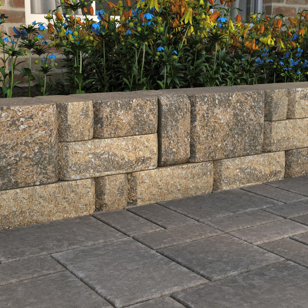 • Split face texture offers a more rugged stone appearance, exposing the inner aggregates and giving depth to each block