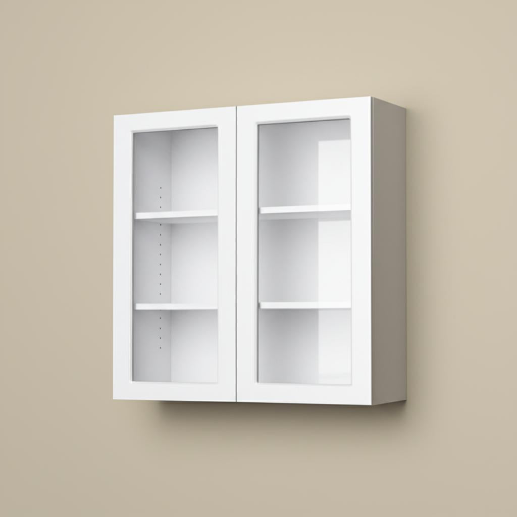 - Elegant Design: Clear glass doors and white thermofoil finish for a clean, modern look.