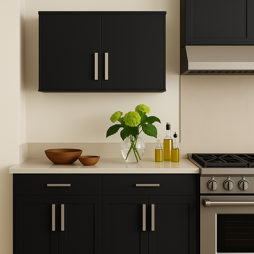 The Amucolo Black Wood Wall Kitchen Cabinet combines modern design with practical storage solutions. Featuring double doors and soft-close functionality, this cabinet is perfect for organizing your kitchen essentials while enhancing the decor.