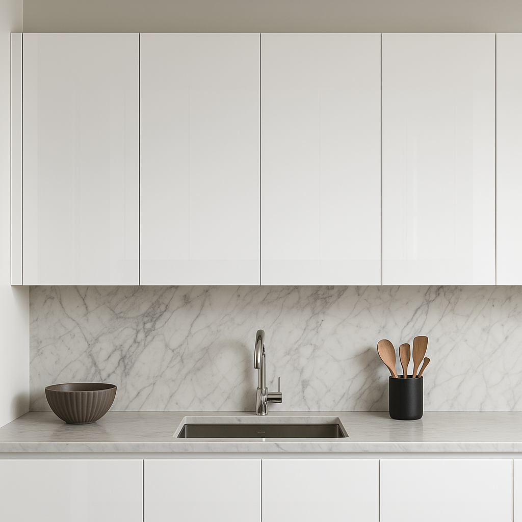 The Cambridge Radiance kitchen cabinet combines modern design with practical functionality. Featuring a frameless construction and high-gloss white finish, it offers adjustable shelves and soft-close doors for a sleek and durable storage solution.