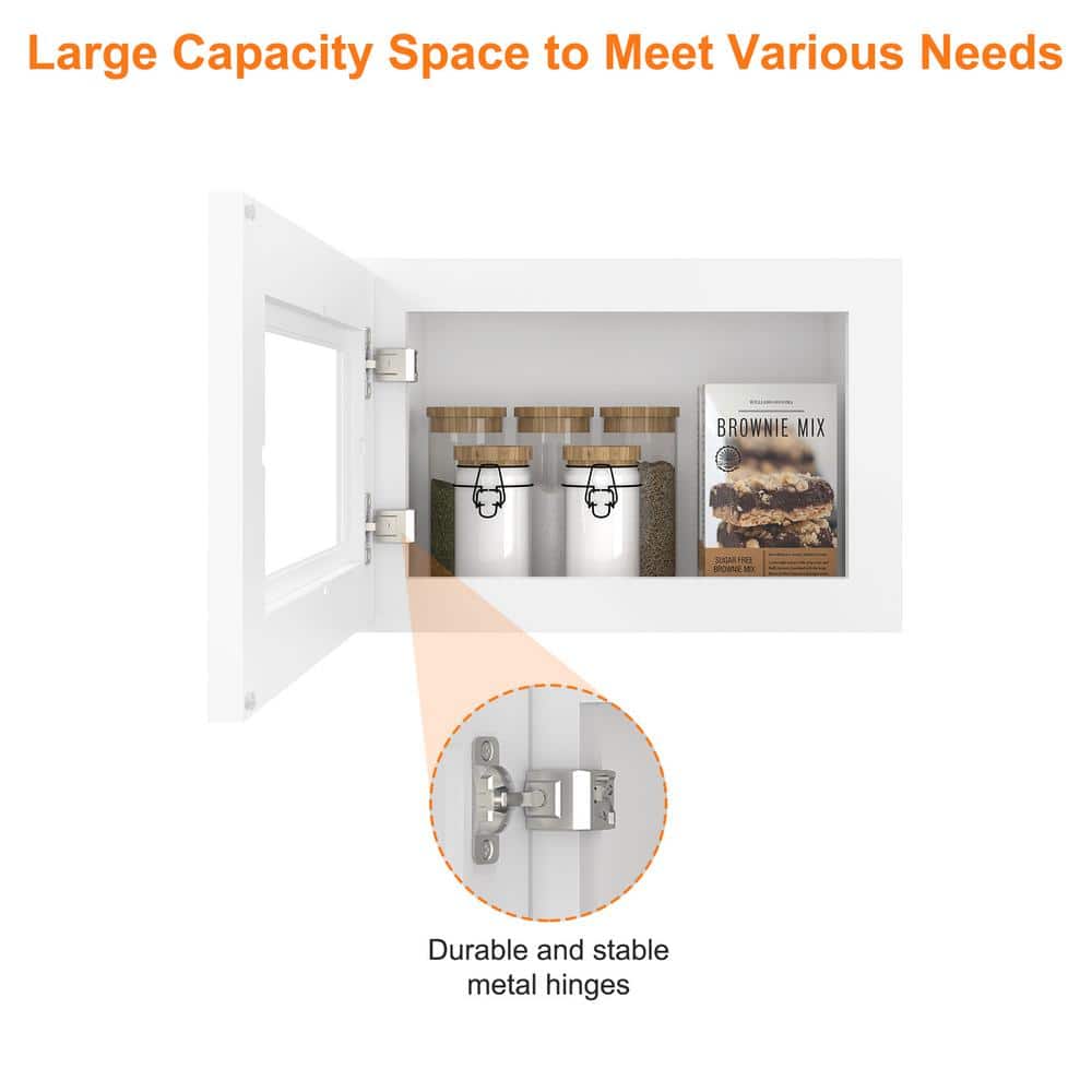 The HOMEIBRO Shaker White Ready to Assemble Wall Kitchen Cabinet combines modern elegance with practical functionality. Crafted with durable HDF door material and a robust plywood box, it offers excellent moisture resistance. Its sleek design is enhanced by soft-close hinges, providing a seamless kitchen experience.