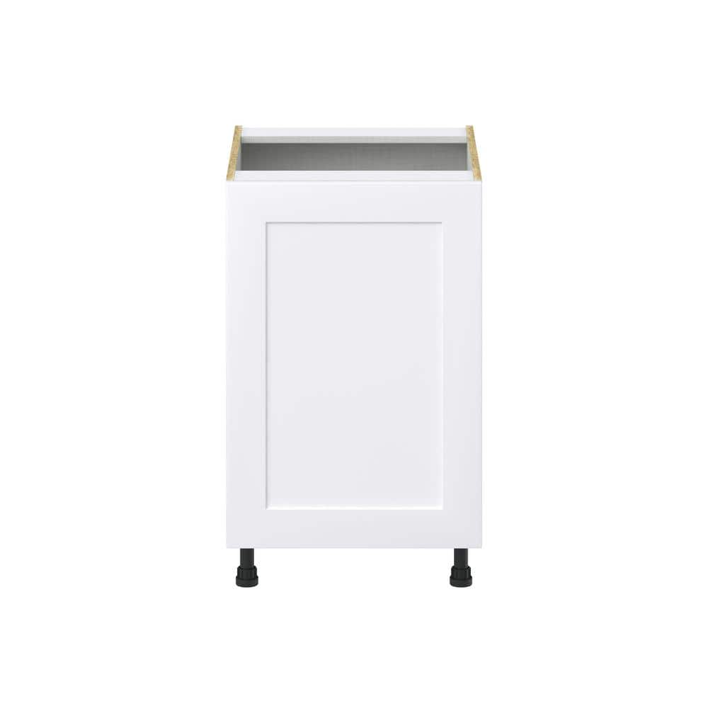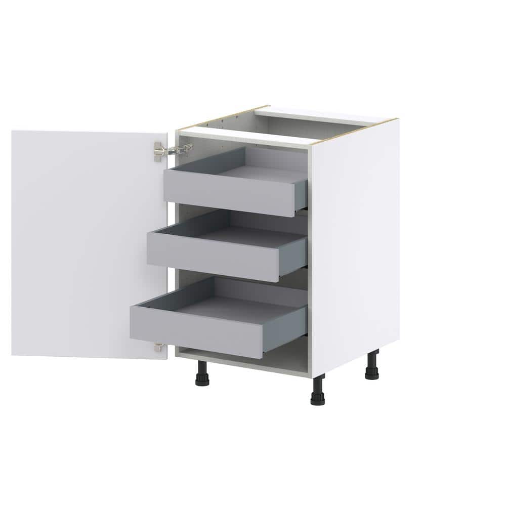 Elevate your kitchen with the J COLLECTION Wallace Base Kitchen Cabinet, a frameless design offering modern functionality and classic aesthetics. This fully-assembled cabinet features three smooth-glide drawers and pre-installed adjustable legs for hassle-free installation, allowing for easy customization and leveling. The warm white shaker style ensures this piece fits seamlessly into any kitchen layout.