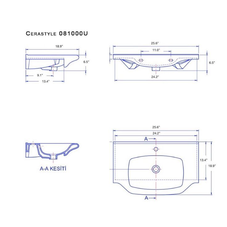 Regular price $219.99Classic-style 25.6 in. wall mounted or self-rimming bathroom sink with 1 pre-drilled faucet hole and included overflow. This beautiful, classic sink is made out of high quality ceramic, and designed by high-end, and well known Turkish brand CeraStyle.