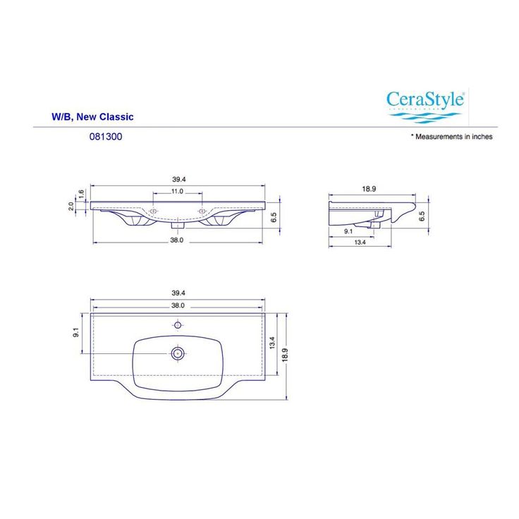 Regular price $487.00Classic-style 40 in. wall mounted or self-rimming bathroom sink with 1 pre-drilled faucet hole and included overflow. This beautiful sink features counter space on both sides for bath essentials. Sink is made out of high quality ceramic, and designed by high-end, and well known Turkish brand CeraStyle.
