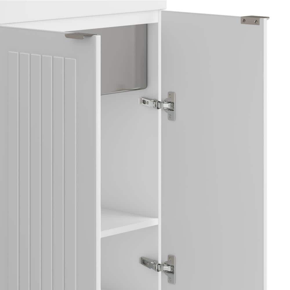 Simpli Home Murphy Transitional 24 in. wall mount Laundry sink with Cabinet Faucet and Stainless Steel Sink in White