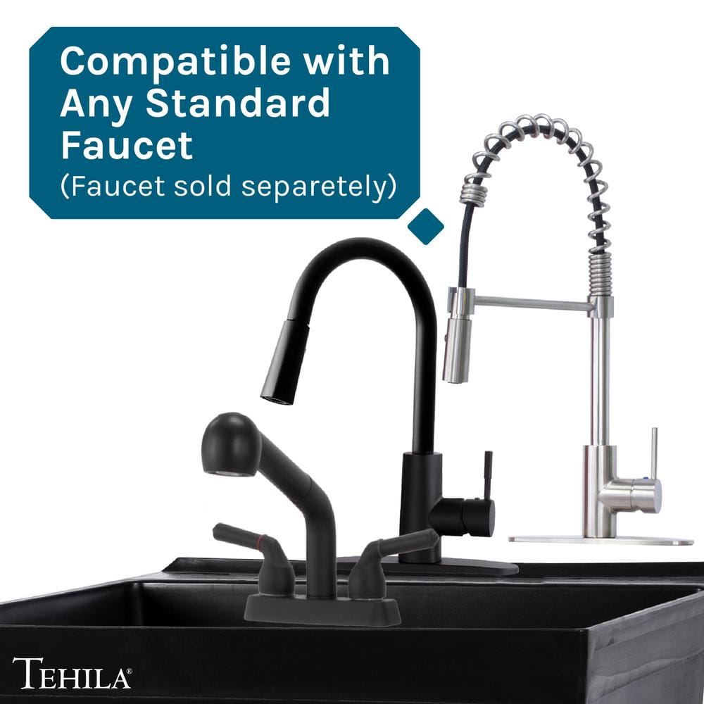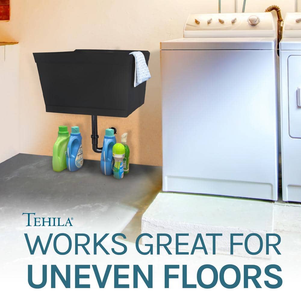 The TEHILA Black Wall Mounted Utility Sink Kit is a smart solution for tight spaces, offering an elegant design without compromising utility. Made from durable thermoplastic, this 19-gallon sink kit comes complete with everything needed for easy DIY installation, including a sink, drain, P-trap, and water supply lines, making it ideal for laundry rooms, basements, and more.