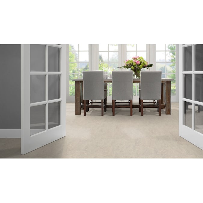 Channeling the elegance of polished stone, the Marmoleum Cinch Loc Seal Flooring brings a refined touch to any room with its sleek tile finish and light gray tones. The standout feature is its eco-conscious composition, crafted from natural and renewable materials, adding both tranquility and style. Embrace its versatility by pairing with modern, minimalist decor for an effortlessly chic look. Truly, this flooring is not just a foundation—it's an essential canvas for sophisticated and luxurious living.