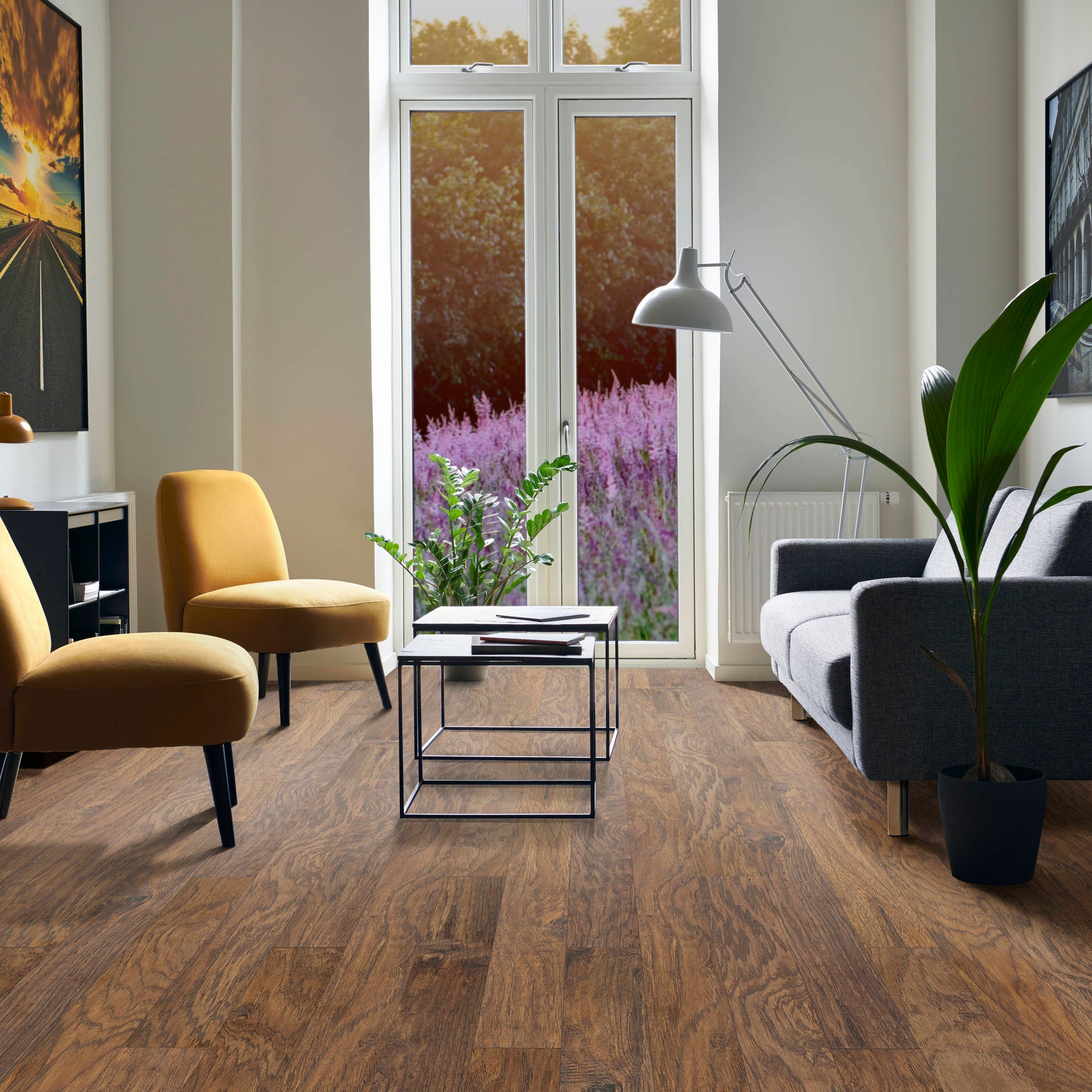 The Pergo Lowland Hickory laminate sizzles with rustic charm, transforming your home into a warm, inviting sanctuary. Its distressed, handscraped finish adds an artisanal touch, reminiscent of timeless craftsmanship. Consider pairing it with cozy, neutral-toned furnishings for a harmonious setting that whispers sophistication. This laminate flooring not only elevates style but contributes to a luxurious living experience with its robust and adaptable design.