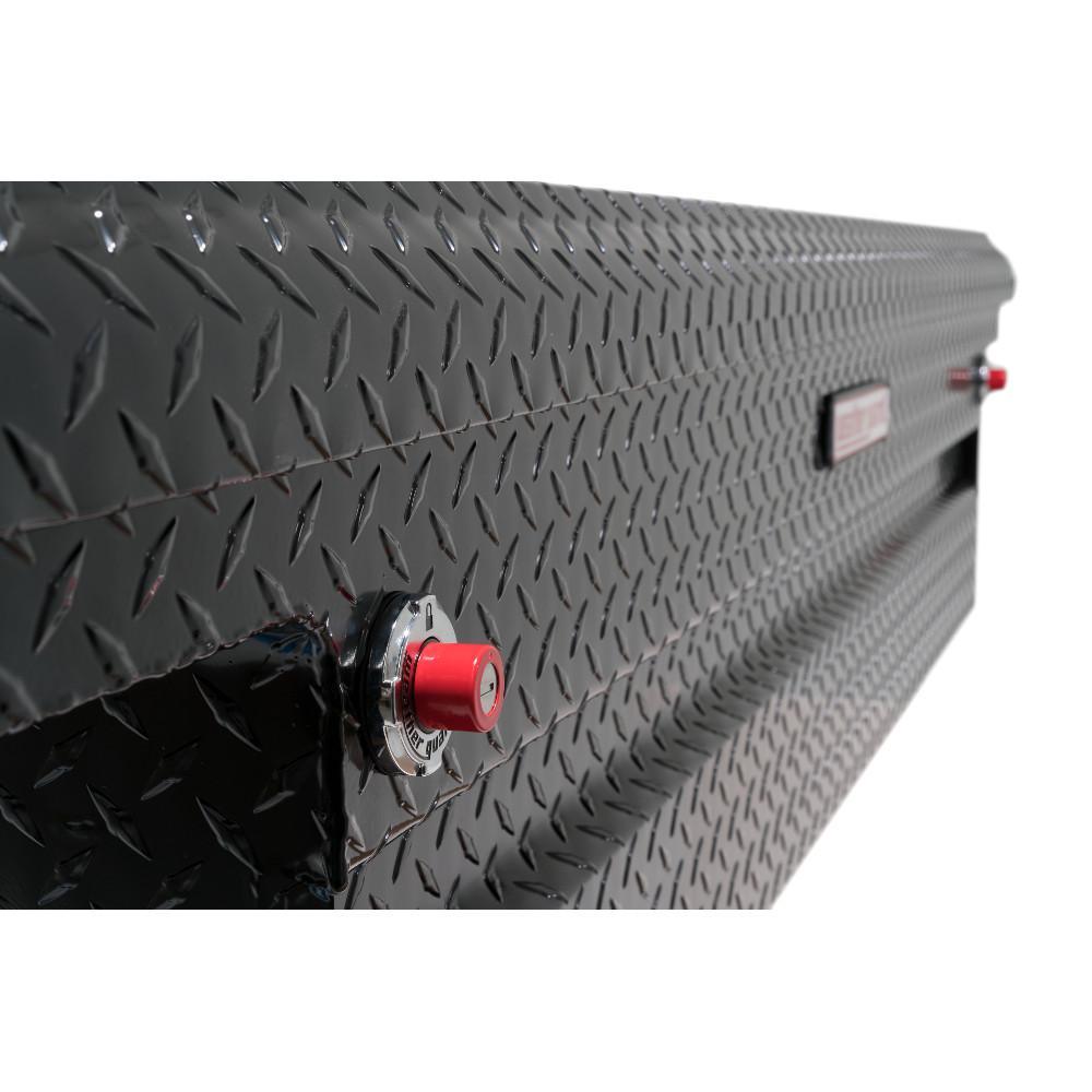 Saddle Boxes are the most popular truck storage option due to ease of installation, maximum bed clearance and legendary durability. The aluminum full-size, low profile Model 121-5-01 Saddle Box features a diamond plate pattern with black ARMOR-TUF Powder Coat finish. It has a storage capacity of 8.8 cu. ft.
