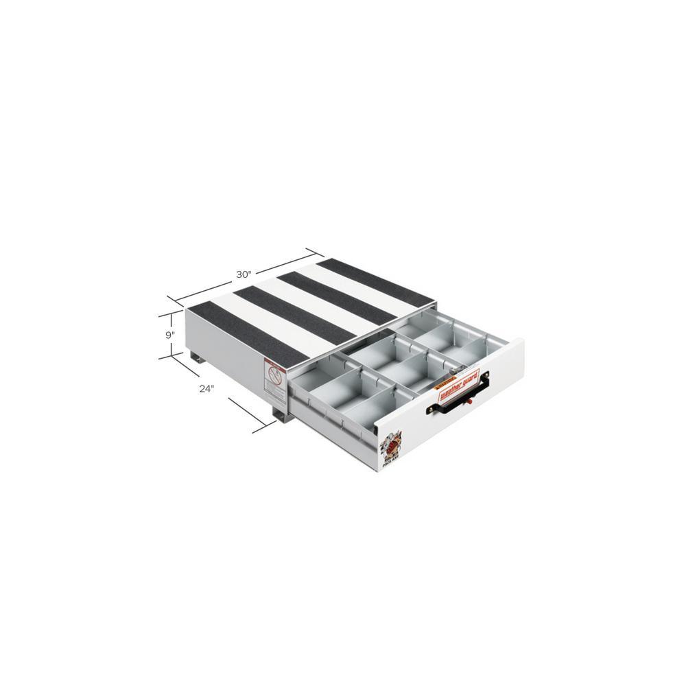 Regular price $846.00Heavy-duty storage keeps bed space open and supplies organized. The Model 312-3 steel Pack Rat Short Drawer Unit has 3 compartments with 12 dividers and has a load rating of 750 lbs. This unit can be mounted inside the rear of the vehicle to provide easy access to large tools and supplies while leaving floor space open.