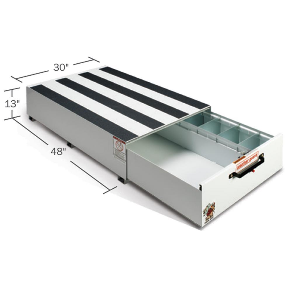 Regular price $1,139.51Heavy-duty storage keeps bed space open and supplies organized. The Model 334-3 steel Pack Rat Extra Wide Drawer Unit has 2 compartments with 6 dividers and has a load rating of 750 lbs. This unit can be mounted inside the rear of the vehicle to provide easy access to large tools and supplies while leaving floor space open.