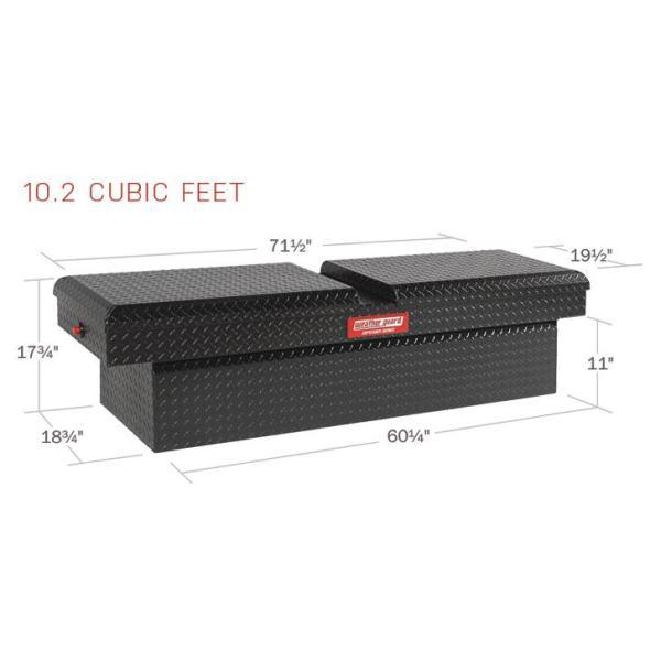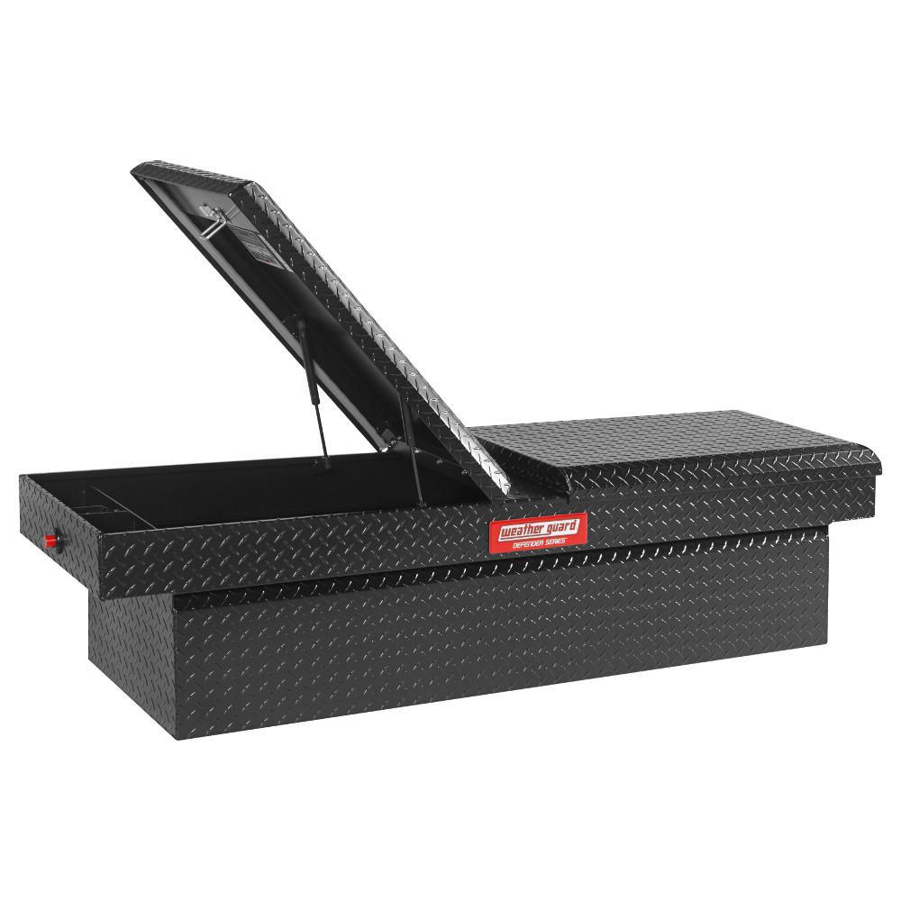 The 10.7 cu. ft. Weather Guard Defender series Model 300207-53-01 Cross Box for full size trucks provides professional protection. This new cross box includes a tamper-resistant push-button lock, steel reinforced, looped strikers, D-shaped ribbed weather stripping, heavy-duty 4-piece welded aluminum box construction and black powder coat finish. Provides professional durability with 4-piece welded construction putting strength where it is needed most.