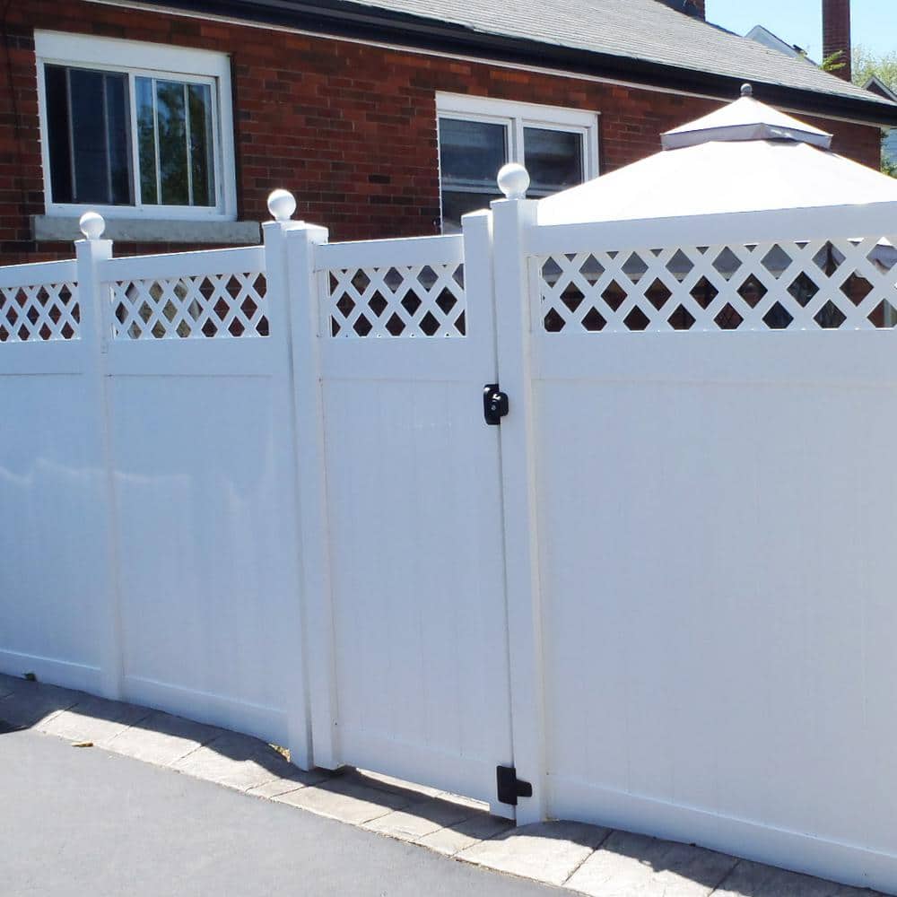 The Ashton gate’s clean white lines and refined lattice top bring a tailored, architectural polish to outdoor spaces. Its solid privacy panels anchor the look, while the delicate grid adds lightness and rhythm along a fence line. Pair it with sculpted greenery or a garden arbor for a timeless entry moment. A luxurious essential that elevates curb appeal with enduring, low-maintenance beauty.