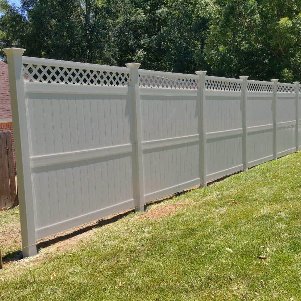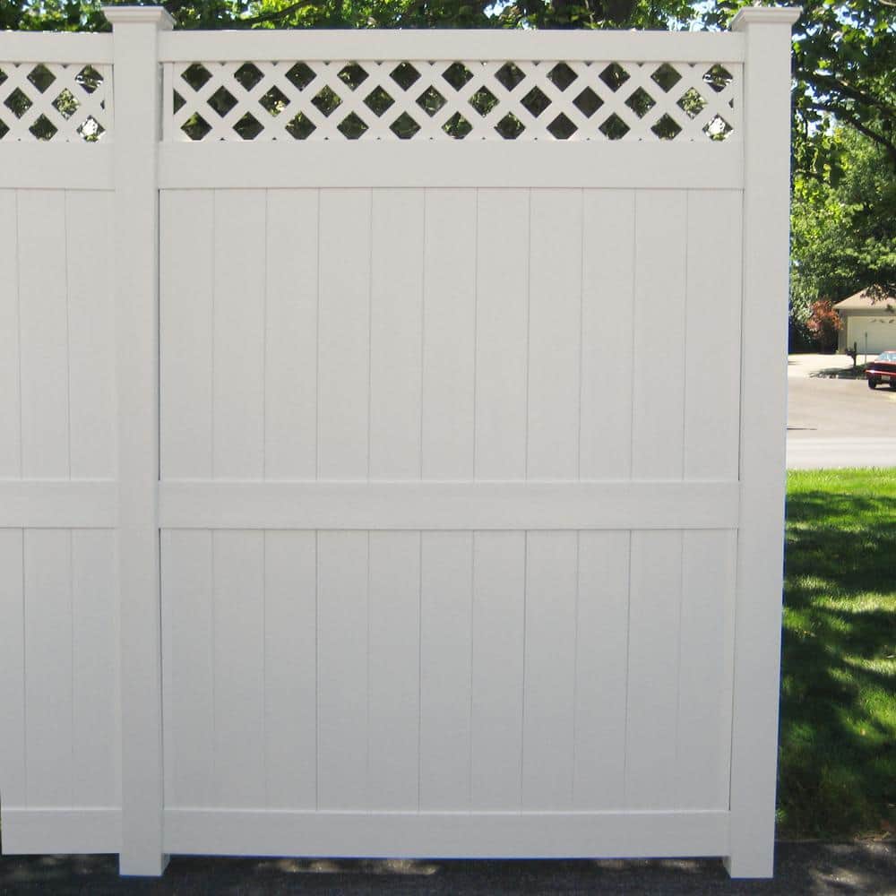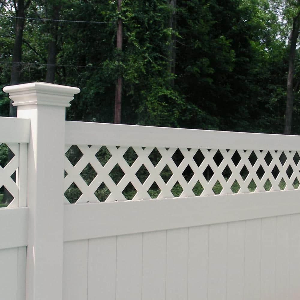Upgrade backyard privacy with Weatherables’ Ashton vinyl fence panel featuring a decorative lattice top. Built from commercial-grade, UV-protected vinyl with an aluminum-reinforced bottom rail, it resists fading, warping, and water while staying low maintenance.