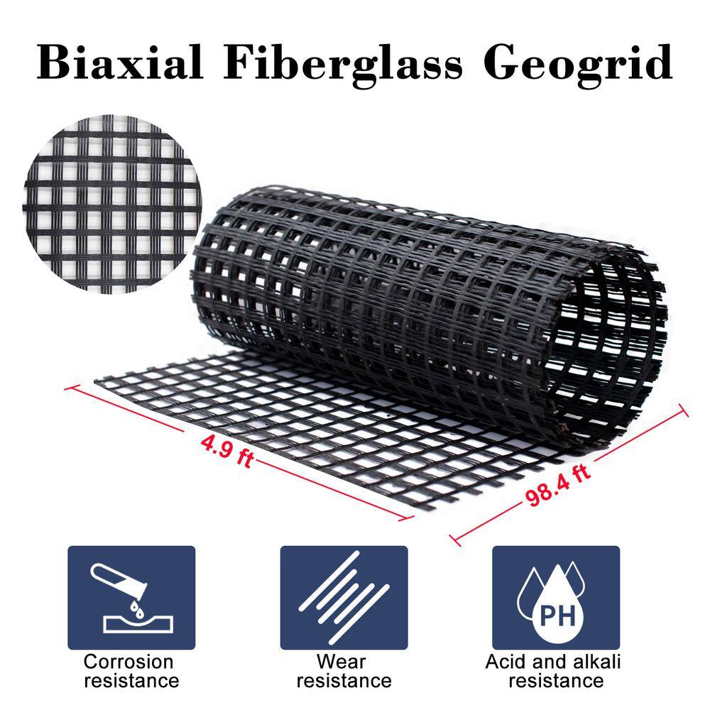 Wellco 4.9 ft. W x 98.4 ft. L x 0.2 in. H 80KN Biaxial Geogrid Black Plastic Paver Base for Landscaping, Sheds