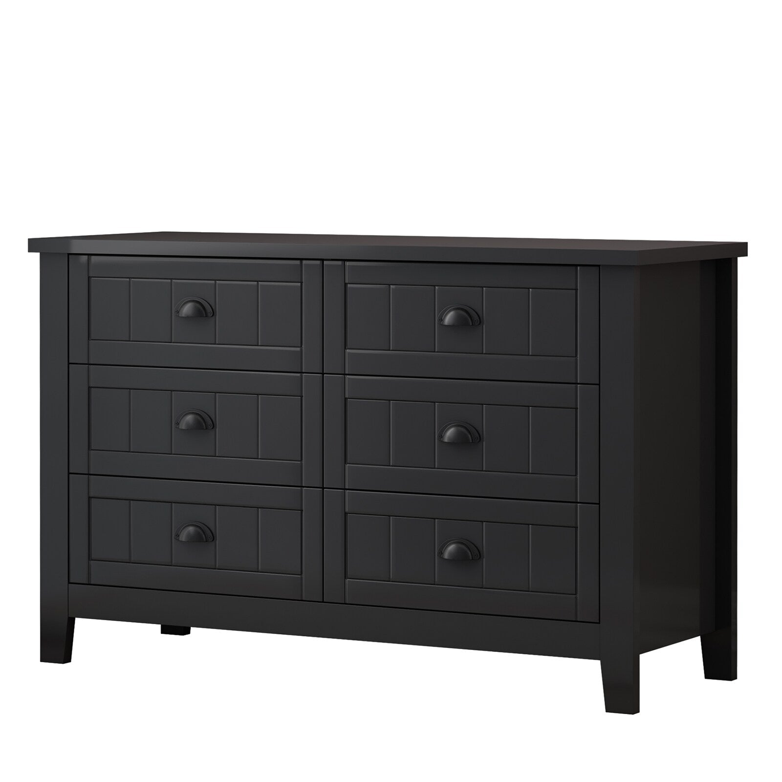 Elevate your living space with the WELLFOR Traditional Black Wood Cabinet, featuring six versatile doors and shelves paired with retro shell-shaped handles. Crafted from sturdy birch wood, this piece combines classic design elements with durable functionality, offering the perfect solution for elegant storage in any room.