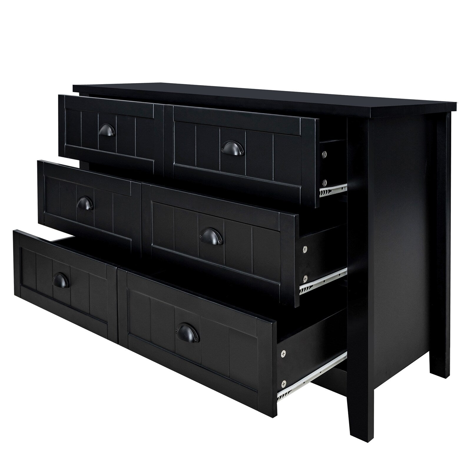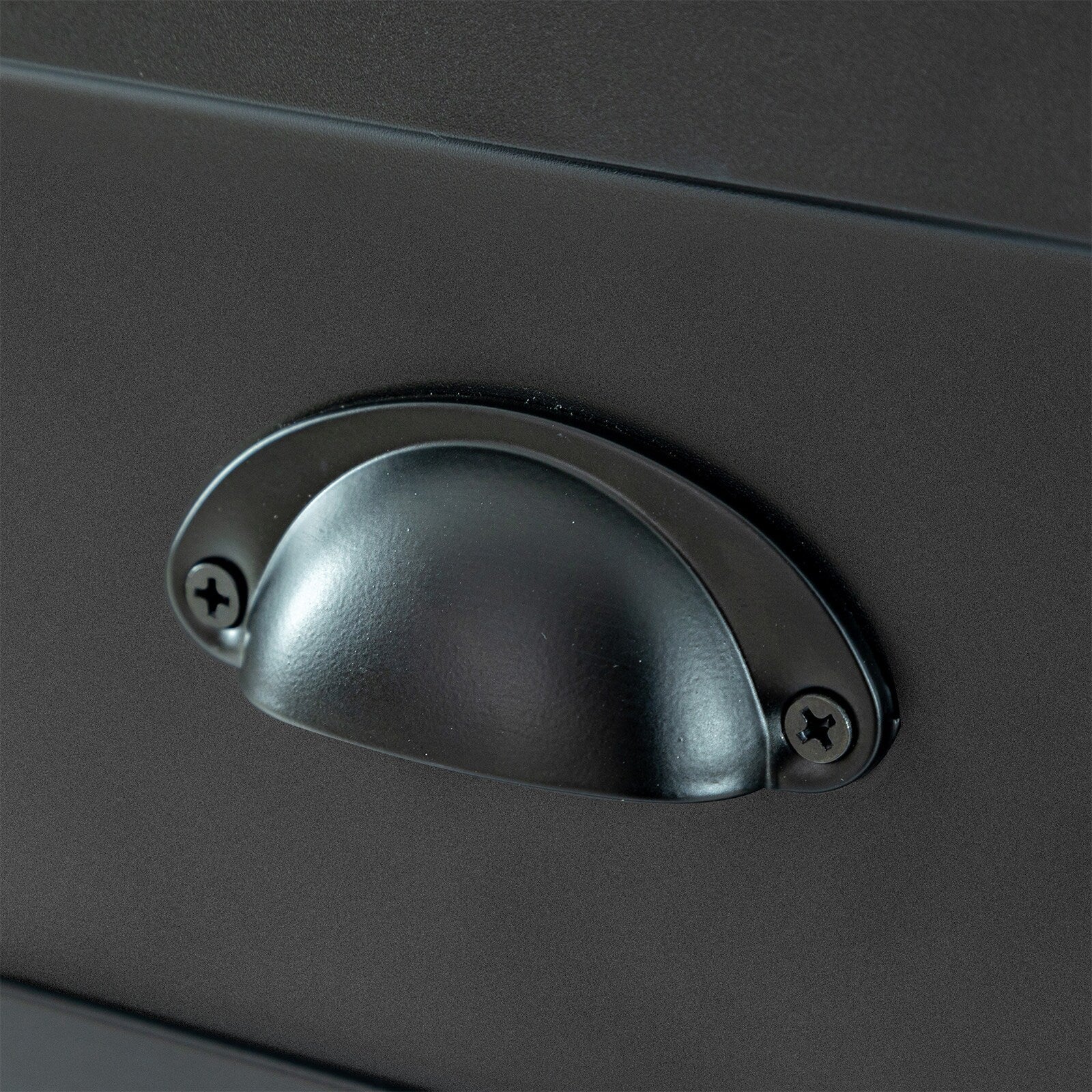 • Classic Design: Traditional black wood finish with retro shell-shaped handles adds timeless charm to any space.