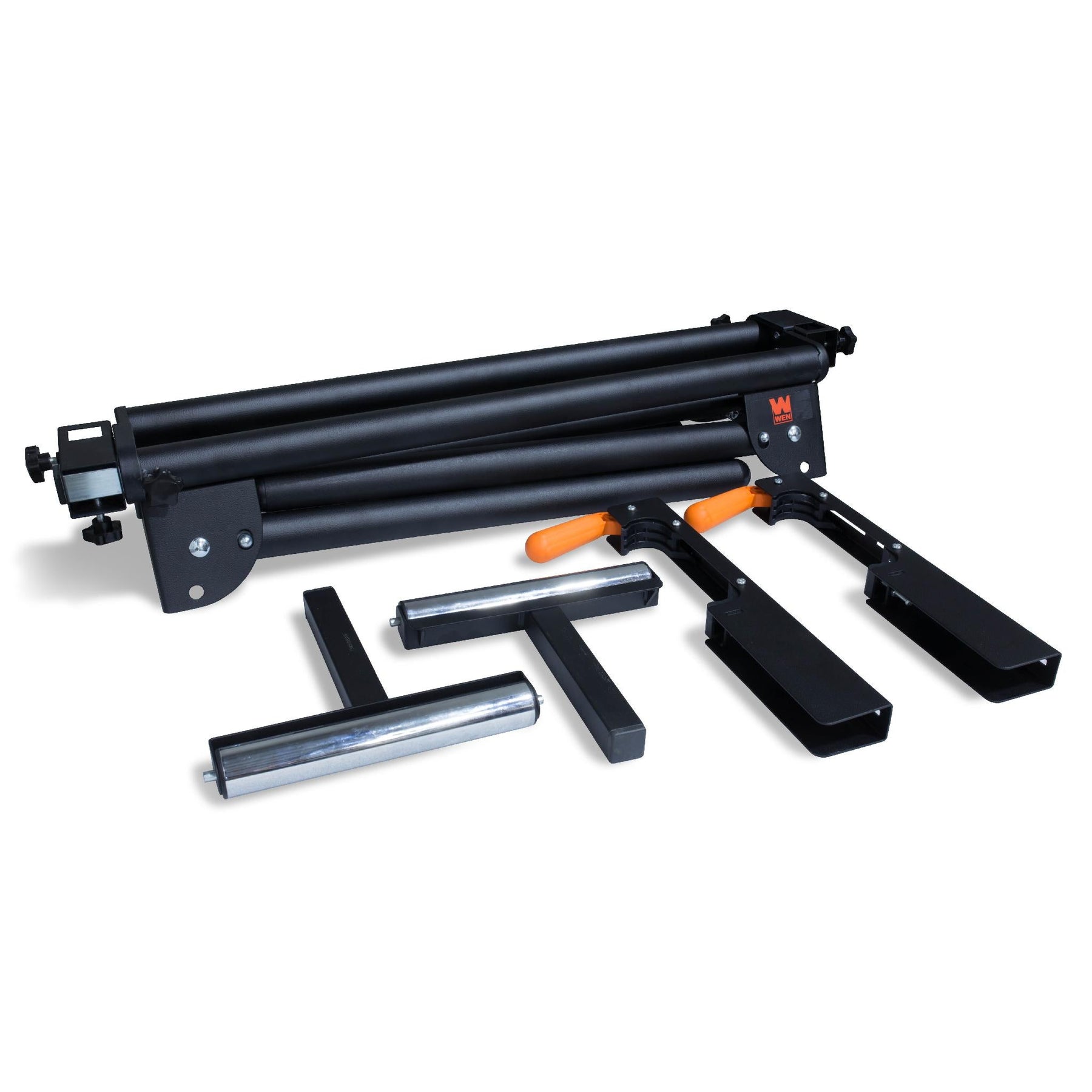 | Included Components | Two height adjustable rollers, quick-release brackets, two table extensions |