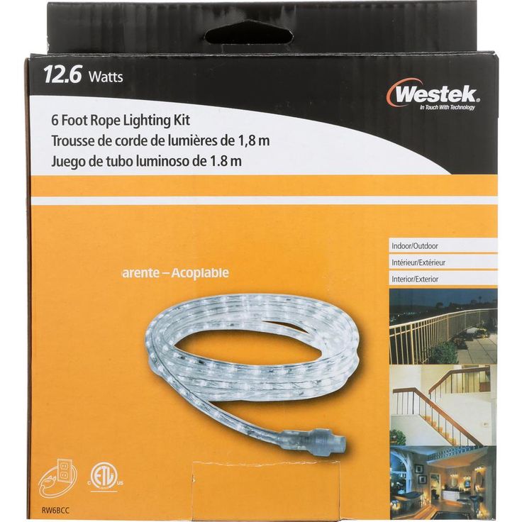 The Westek Indoor/Outdoor Incandescent Rope Lights feature flexible, heavy duty, UV inhibiting PVC tubing that resists yellowing and cracking. Connect additional kits for up to 186 ft. of continuous light - just remove main rope light end cap, remove power cord from 2nd kit and screw the two together. Perfect for inside homes to line steps, bottom or top of cabinets, valances, sliding doors, windows or entertainment center. Commonly used outdoors to outline decks, patios, pathways, stairs.