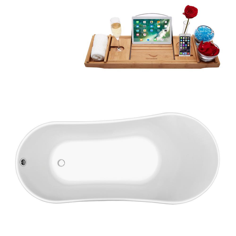 This StreamLine vintage slipper style bathtub was designed to give your bathroom that classic timeless look. Its 59 in. glossy white exterior pairs up nicely with its detailed white claw feet. The chrome exterior drain adds a final change to that vintage look. You can submerge in a relaxing bath as this tub can hold up to 69 Gal. of water.