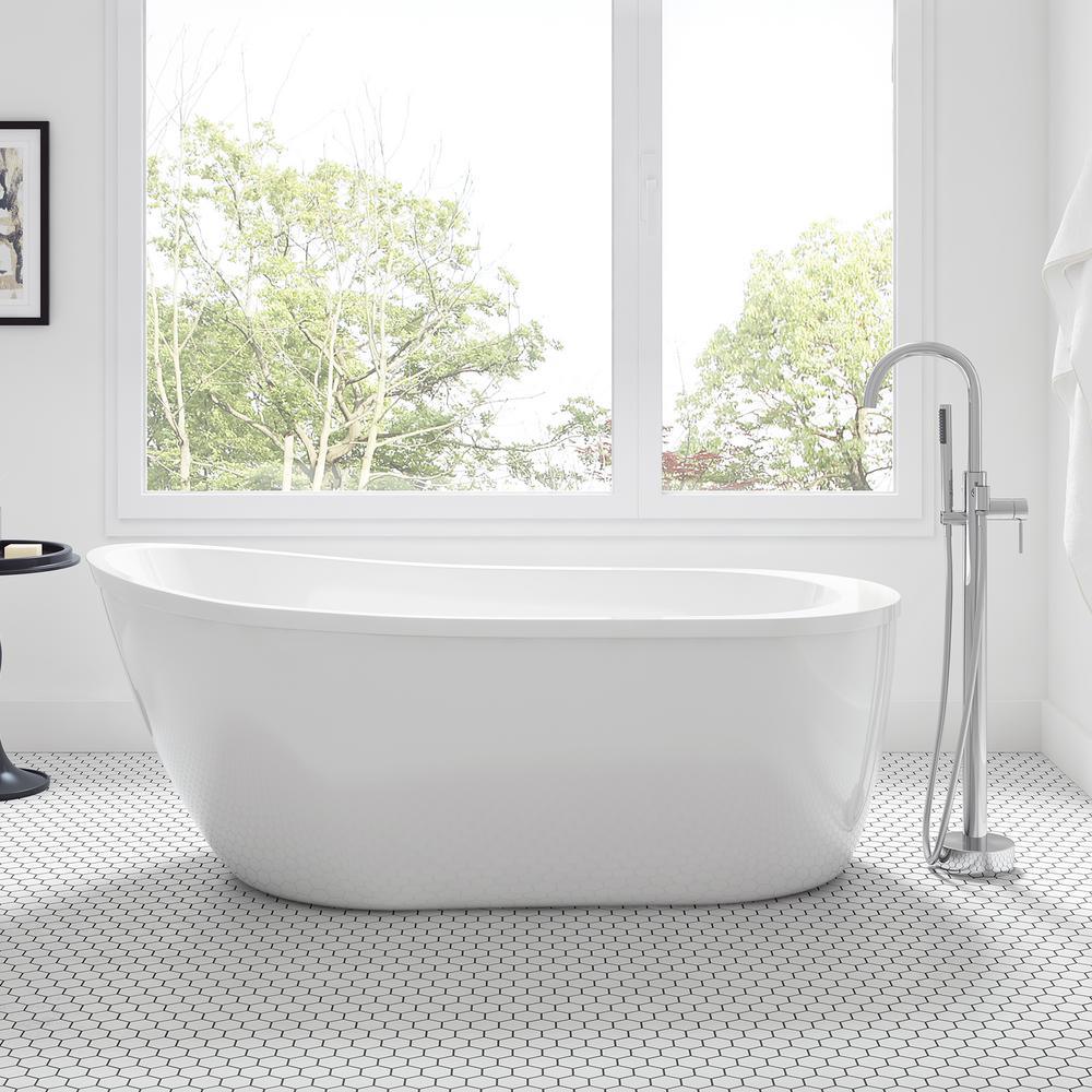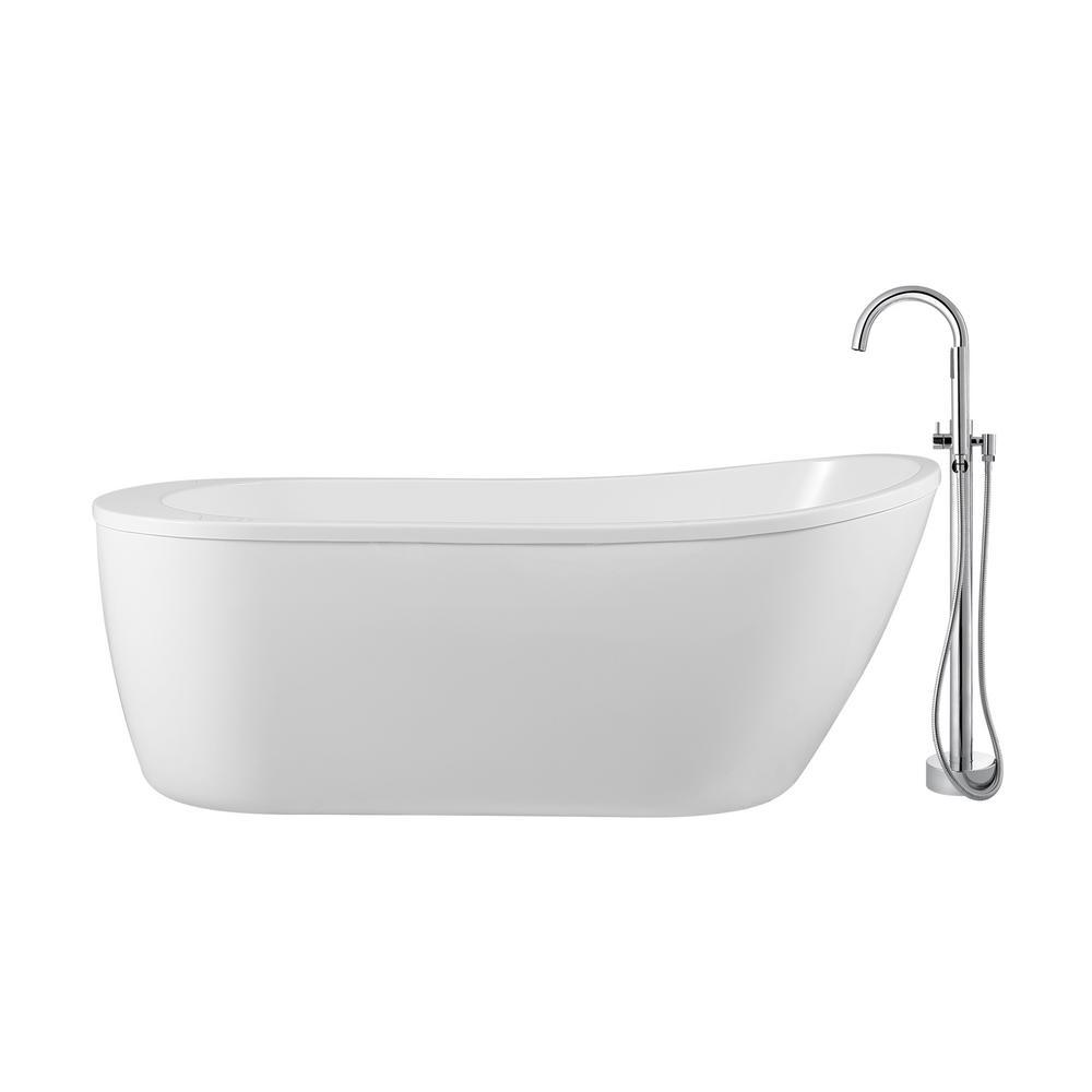 Cantora 60 in. Acrylic Flatbottom Non-Whirlpool Bathtub in White and Faucet Combo in Chrome