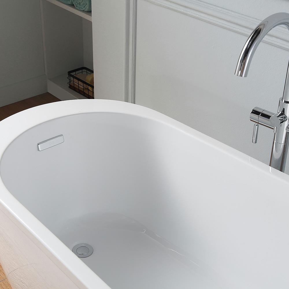 The Cantora 60 in. Acrylic Flatbottom Non-Whirlpool Bathtub with faucet combo in White brings classic elegance to your bathroom. Boasting soft lines reminiscent of 1920s glamour, it features an acrylic and fiberglass construction for long-lasting style. Its versatile size and striking architectural detailing completes the ornate look of this luxurious tub. For added comfort, this tub includes raised backrests.