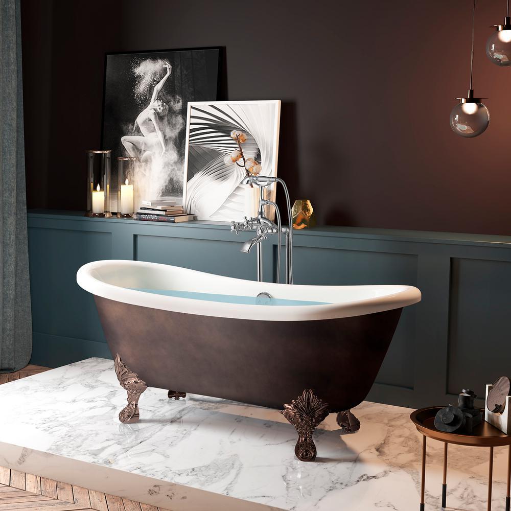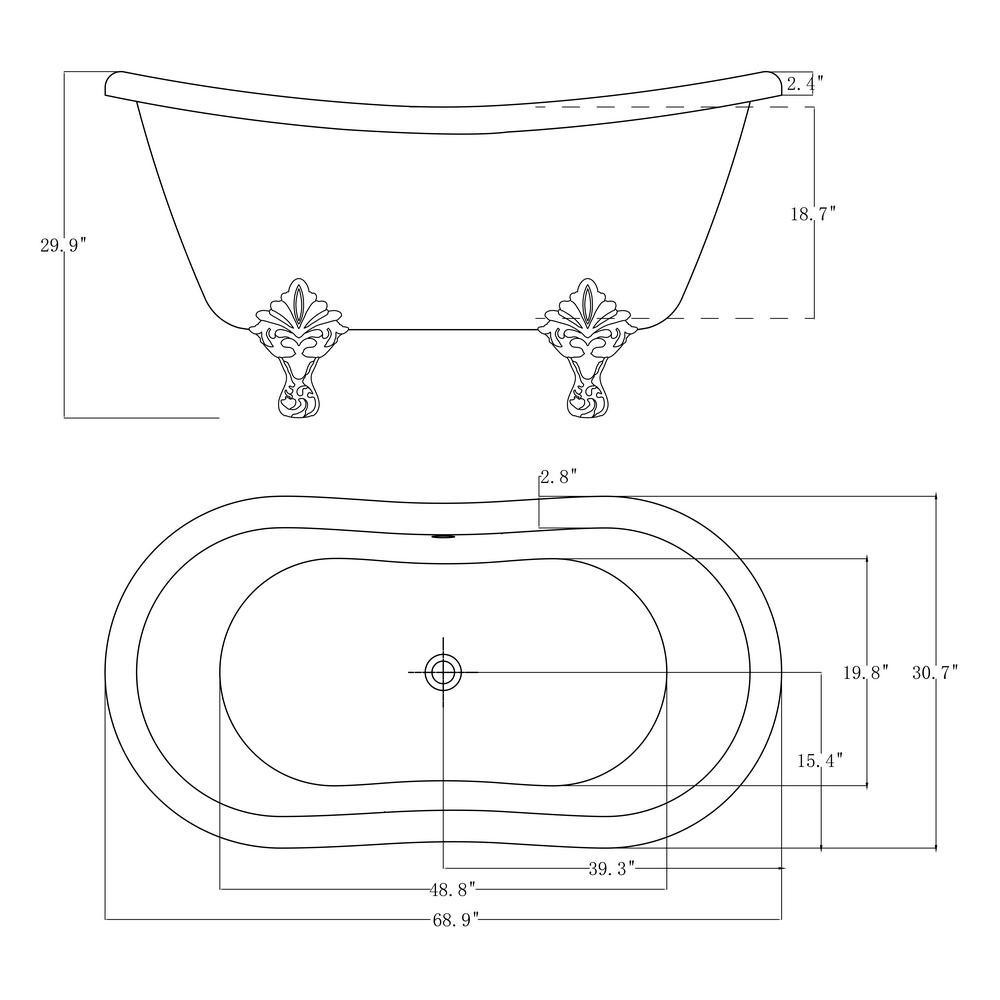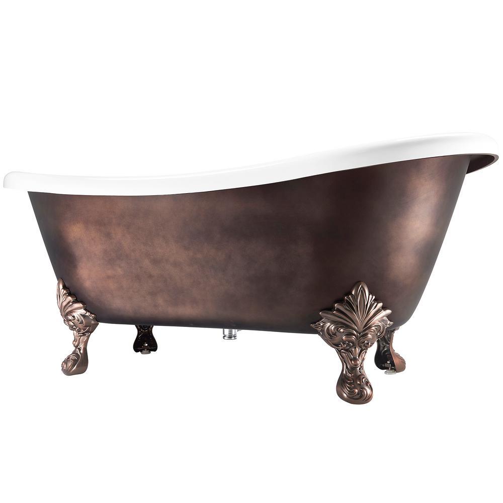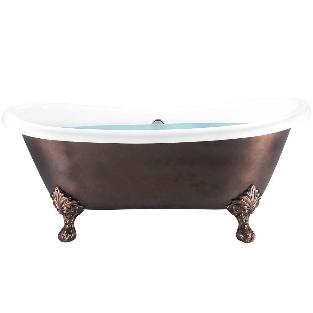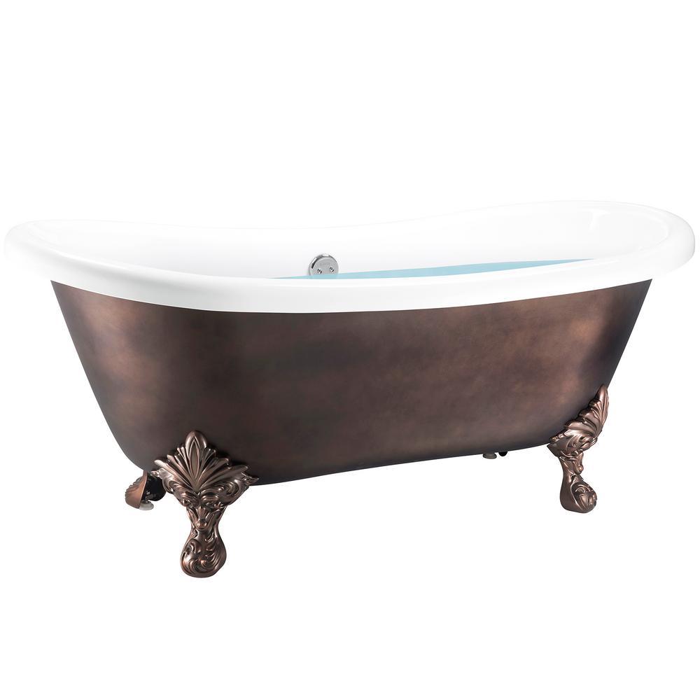 69 in. Fiberglass Double Slipper Clawfoot Non-Whirlpool Bathtub in Matte Antique Brass