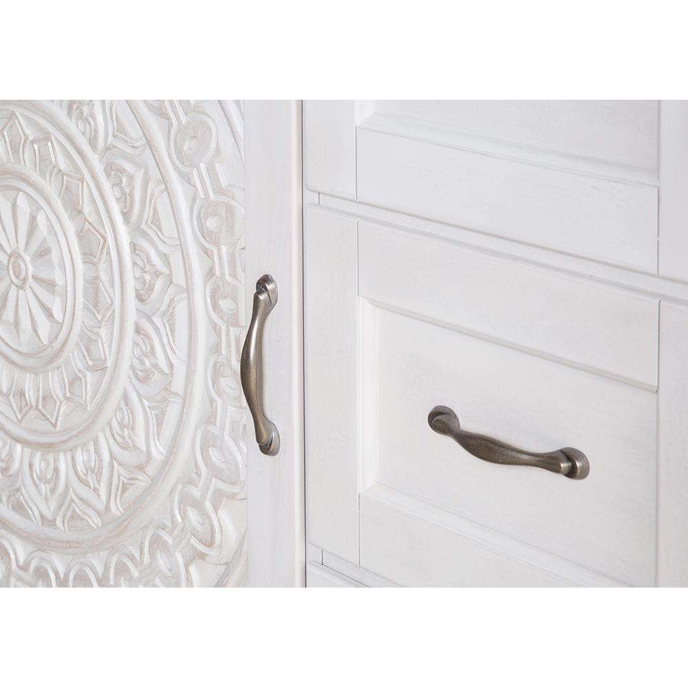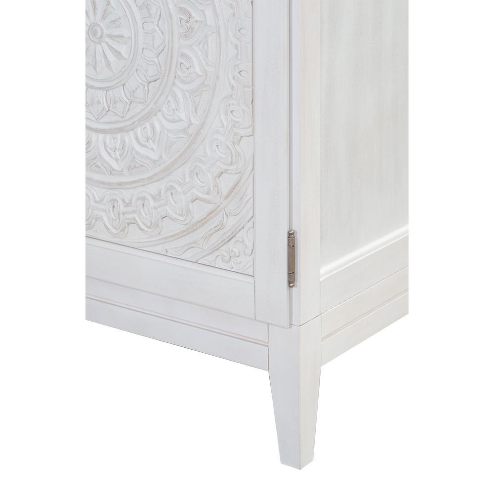 • Cabinet doors feature intricately carved medallions for world-beat appeal