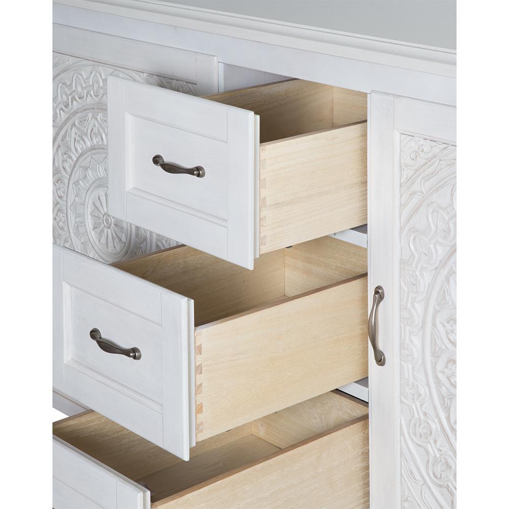 • 3-recessed-panel drawers featuring dovetail construction and ball-bearing glides