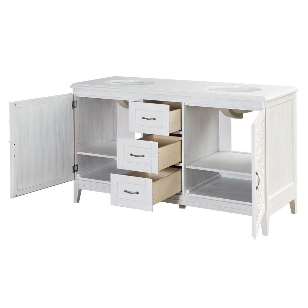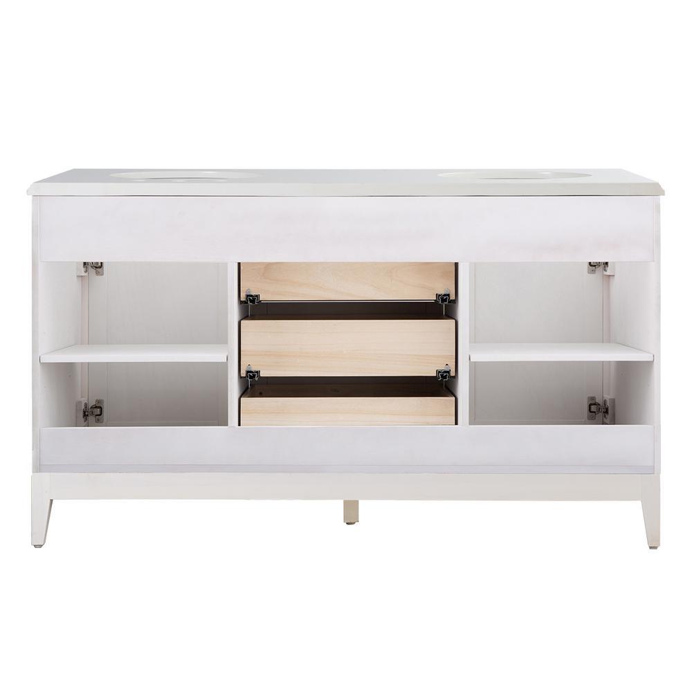 Chennai 61 in. W Double Vanity in White Wash with Engineered Stone Vanity Top in Crystal White with White Sinks