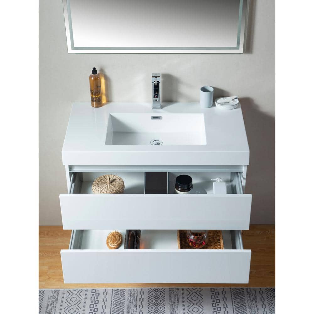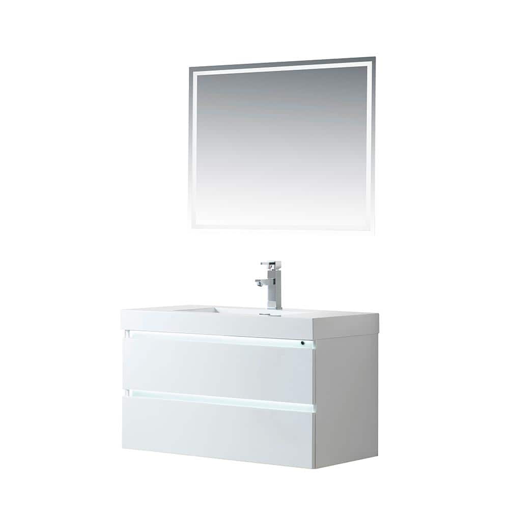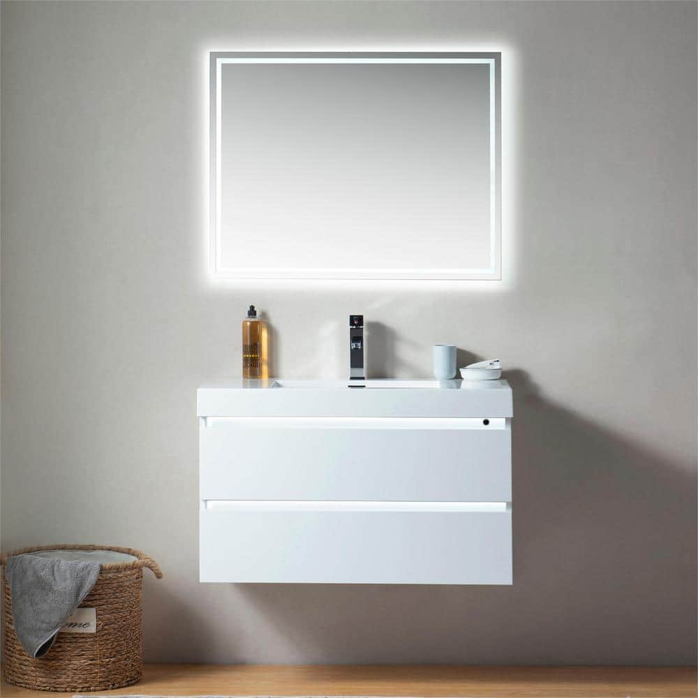 Annecy 36-inch Wall-Hung LED Bathroom Vanity with White Resin Top