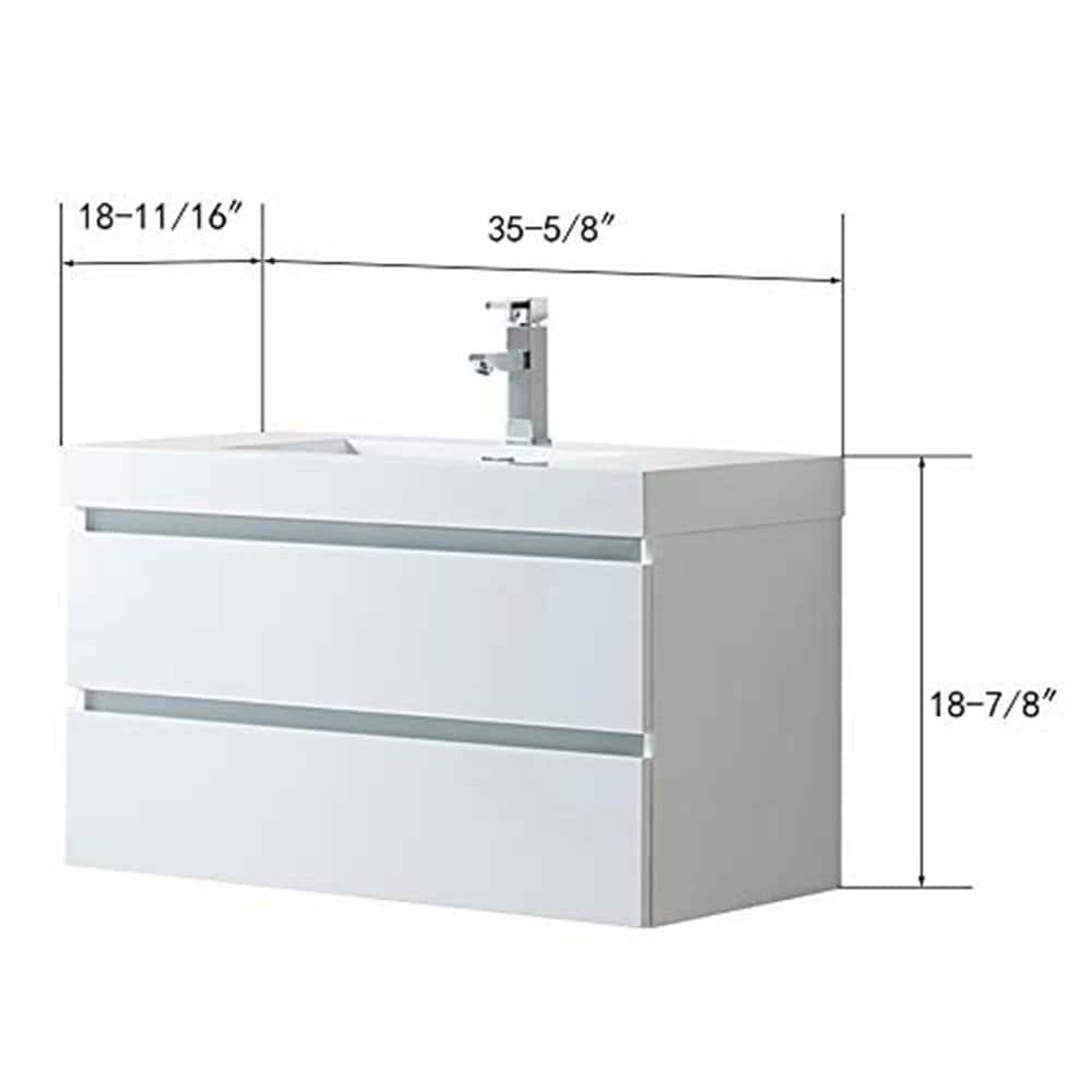 Vanity Art Annecy 36 in. W x 18.5 in. D x 20 in. H Bathroom Wall Hung LED Vanity in White with Single Basin Vanity Top in White Resin