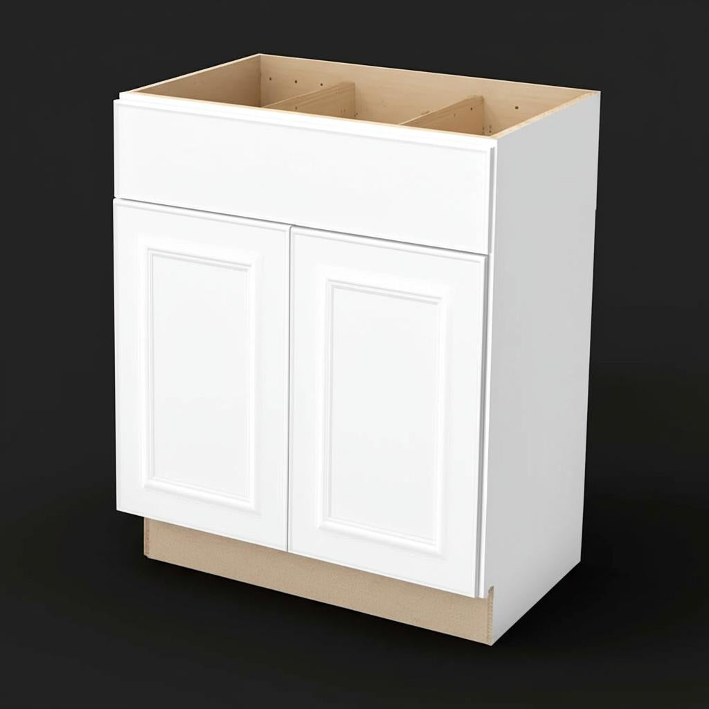 Transform your kitchen with the Hampton Bay Base Cabinet, a blend of functionality and timeless design. Its raised panel doors and satin white finish create a sophisticated look, while the adjustable shelves and smooth drawer glides offer practical storage solutions. Pair it with brass hardware for a luxurious touch, making it a centerpiece in your culinary space.