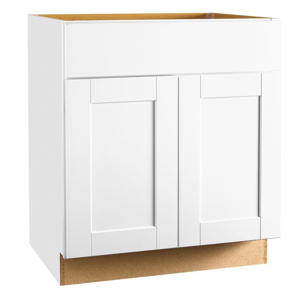 Shaker Assembled 36x34.5x24 in. Sink Base Kitchen Cabinet in Satin White