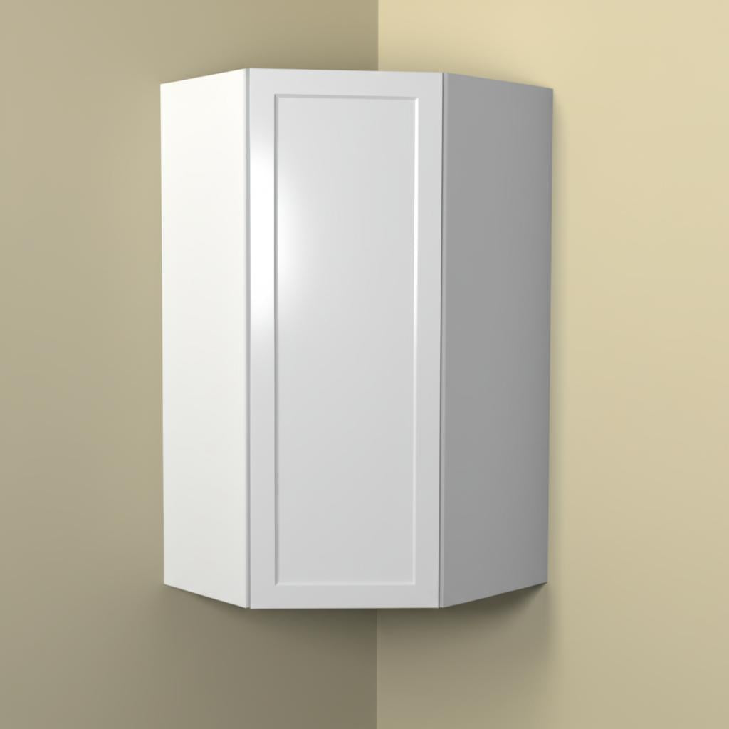 Transform your kitchen into a haven of sophistication with the Melvern Diagonal Wall Kitchen Cabinet. Its shaker-style recessed panel doors and pristine white finish exude timeless elegance, while the frameless construction ensures seamless integration into any modern design. Pair it with brass hardware for a touch of luxury, or keep it minimal for a clean, contemporary aesthetic. This cabinet is not just storage—it's a statement piece for your culinary space.