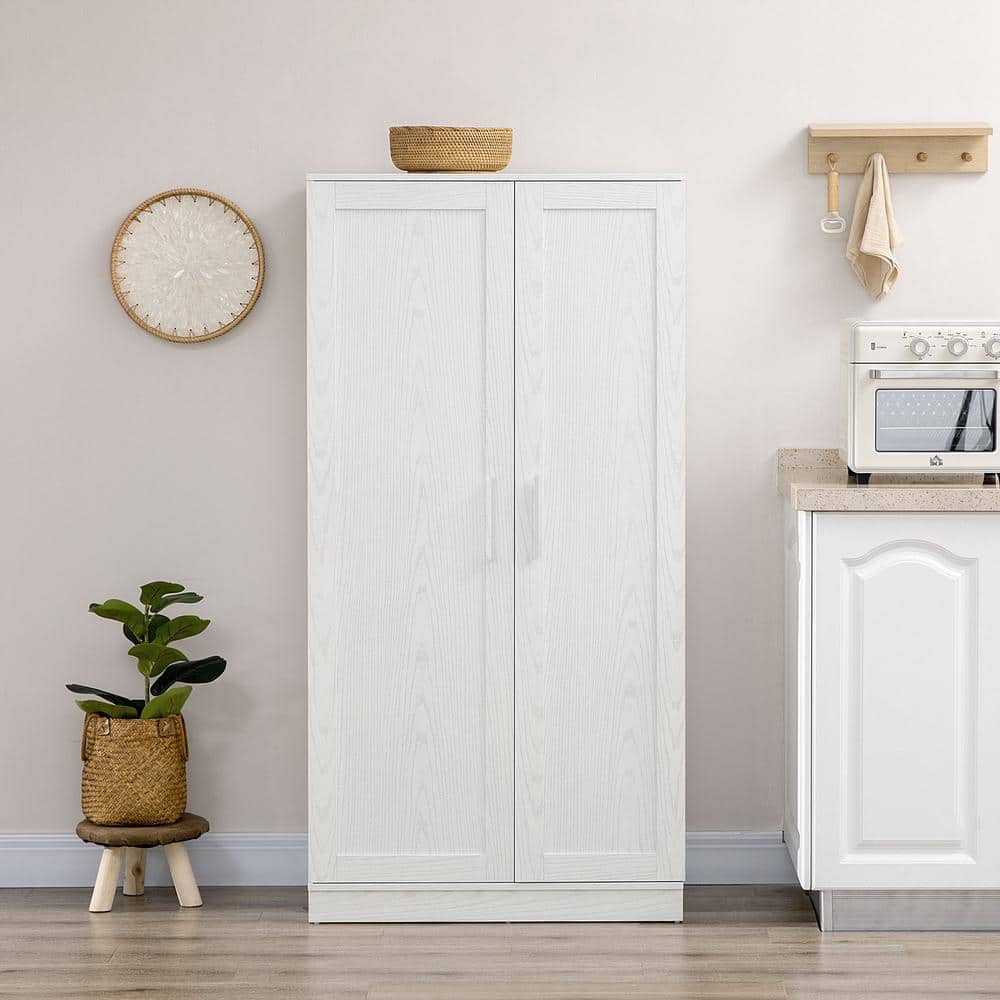 31.5 in. W x 17 in. D x 63 in. H White Particle Board Ready to Assemble Kitchen Cabinet with 2 Doors, Adjustable Shelves
