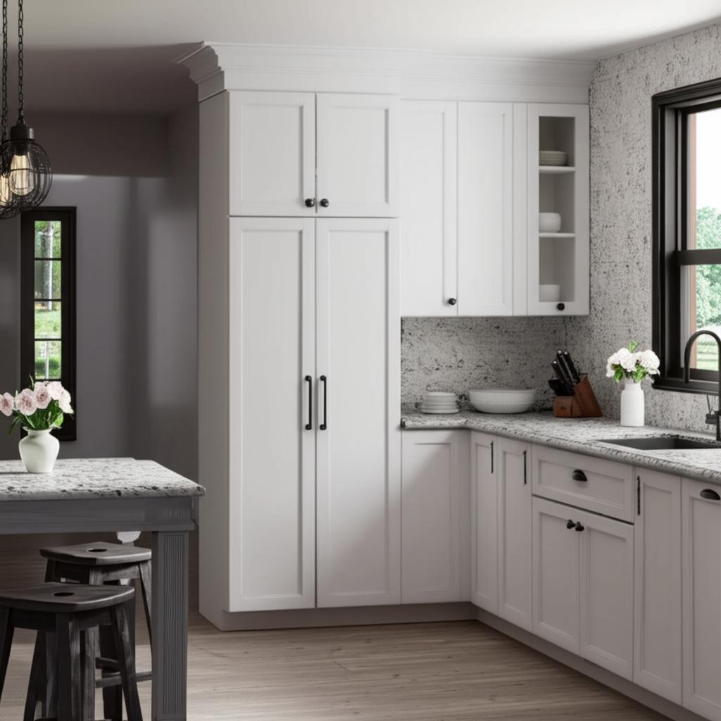Upgrade your kitchen with the Hampton Bay Courtland Polar White Shaker Pantry Cabinet today!
