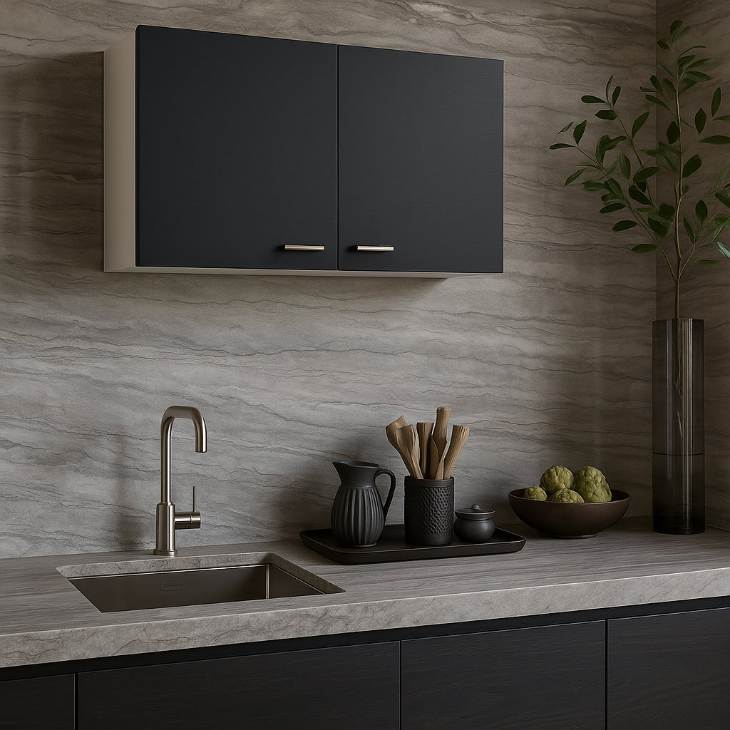 The Amucolo Wall Kitchen Cabinet combines modern design with functionality, featuring a black and white finish and double doors for easy access. Perfect for storing kitchen essentials, this cabinet is ready to assemble and adds a touch of elegance to any space.