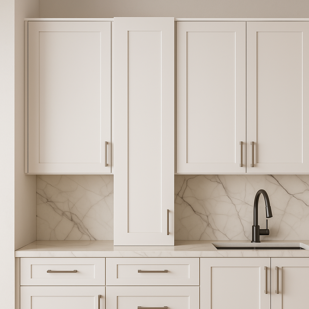 The Cambridge Everest Shaker Wall Kitchen Cabinet combines modern design with practical functionality. Featuring a frameless construction and soft-close doors, this cabinet is crafted from durable MDF and melamine materials, ensuring longevity and style.