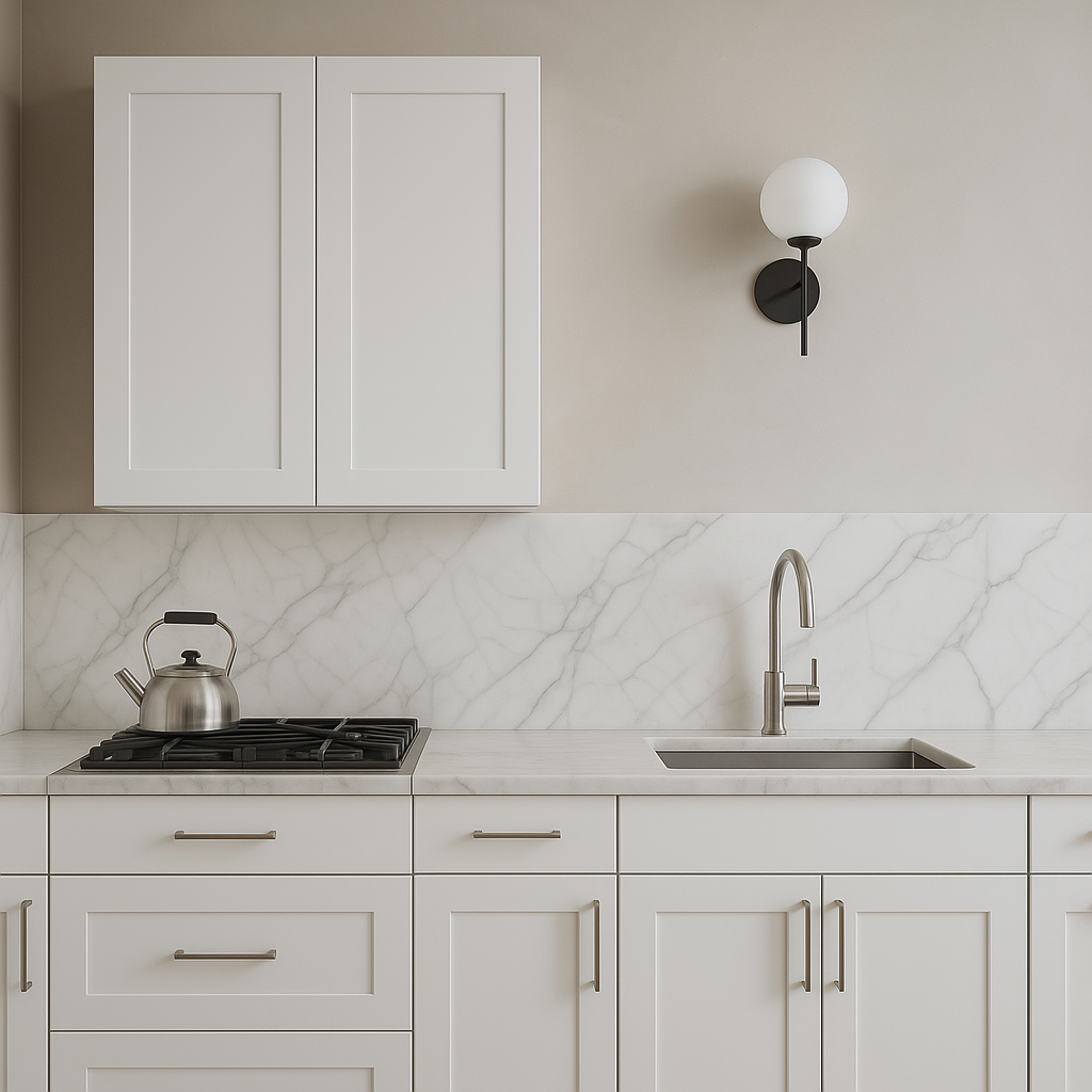 The Cambridge Everest Shaker Wall Kitchen Cabinet combines modern design with practical functionality. Featuring a frameless shaker style, soft-close doors, and adjustable shelves, this cabinet is crafted from durable MDF and melamine materials, finished in a sleek matte white lacquer.